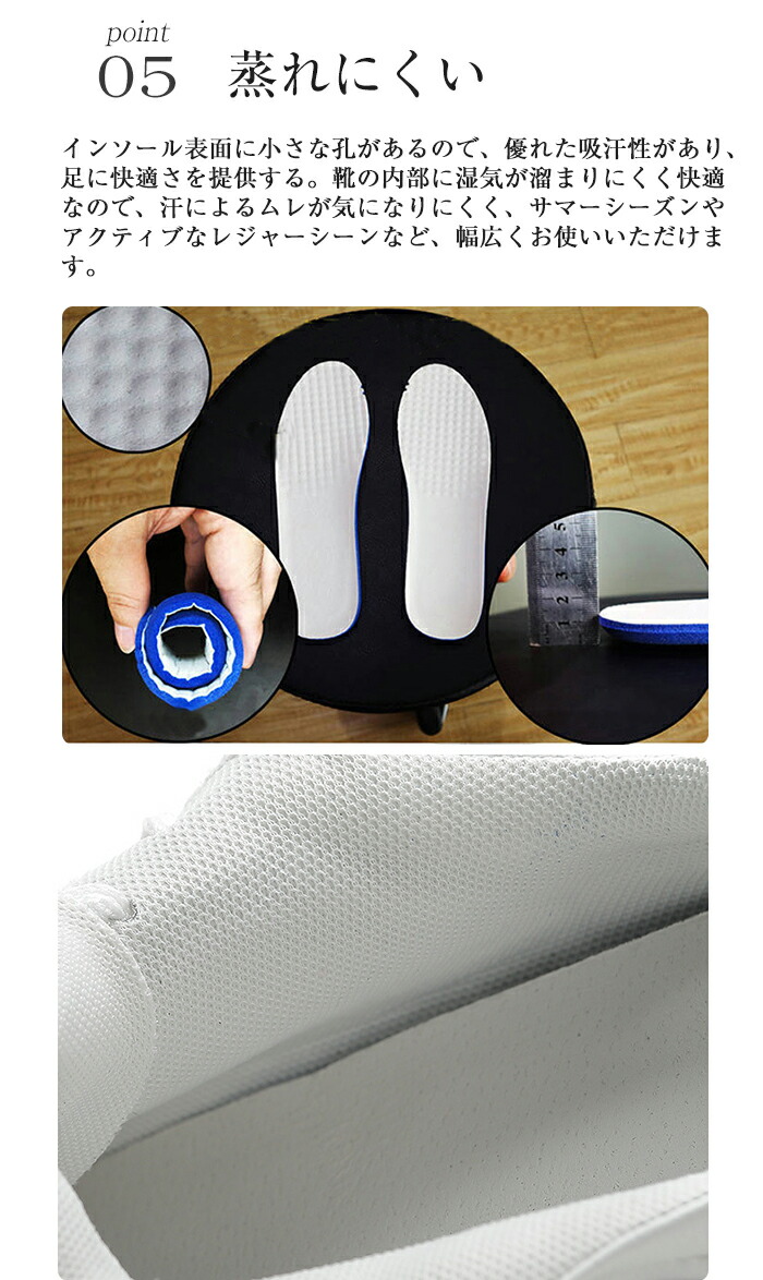 インソール表面に小さな孔があるので、優れた吸汗性があり、足に快適さを提供する。