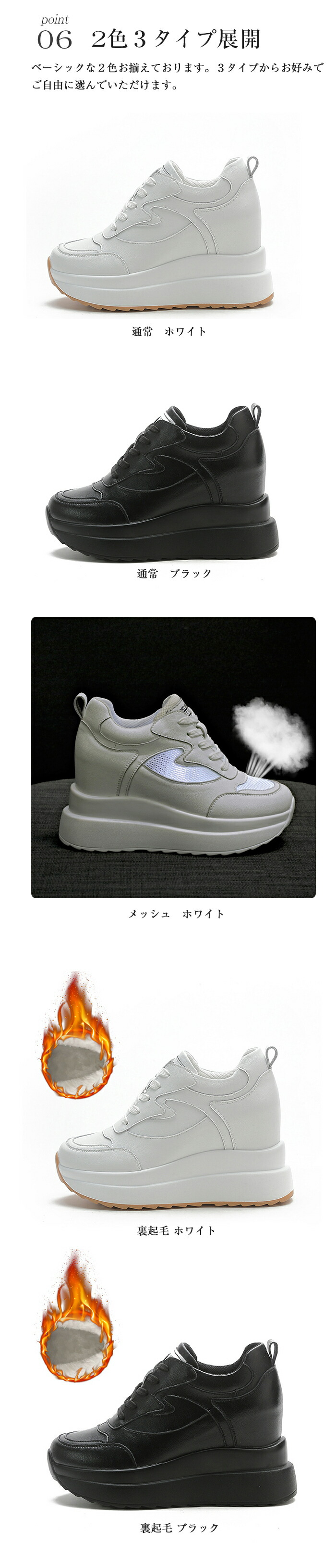 厚底スニーカー 厚底靴 10cm 身長 靴 特集 通常 ホワイト 通常 ブラック メッシュ ホワイト 裏起毛 ホワイト 裏起毛 ブラック 22.0 22.5 23.0 23.5 24.0 24.5 25.0