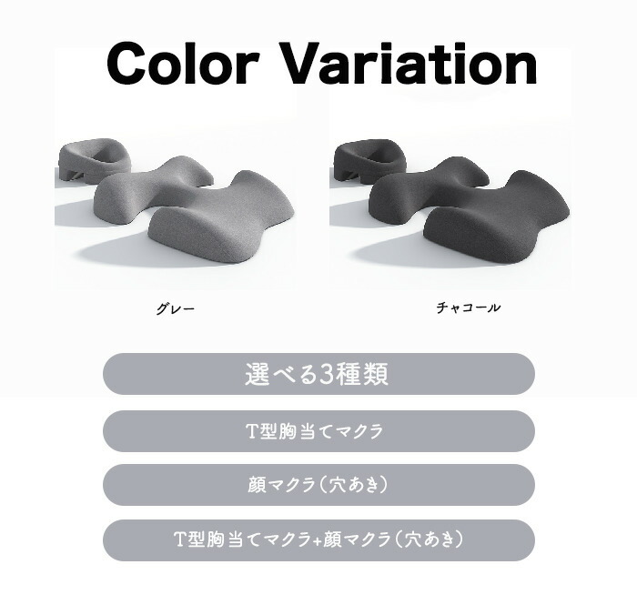 種類:T型胸当て枕・顔枕(穴あき)・T型胸当て枕+顔枕(穴あき)