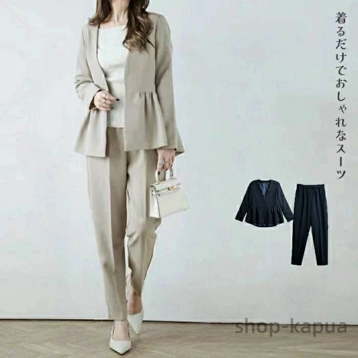 スーツ レディース セット 卒業式 母 レディースファッション 人気 ベージュ ネイビー M L