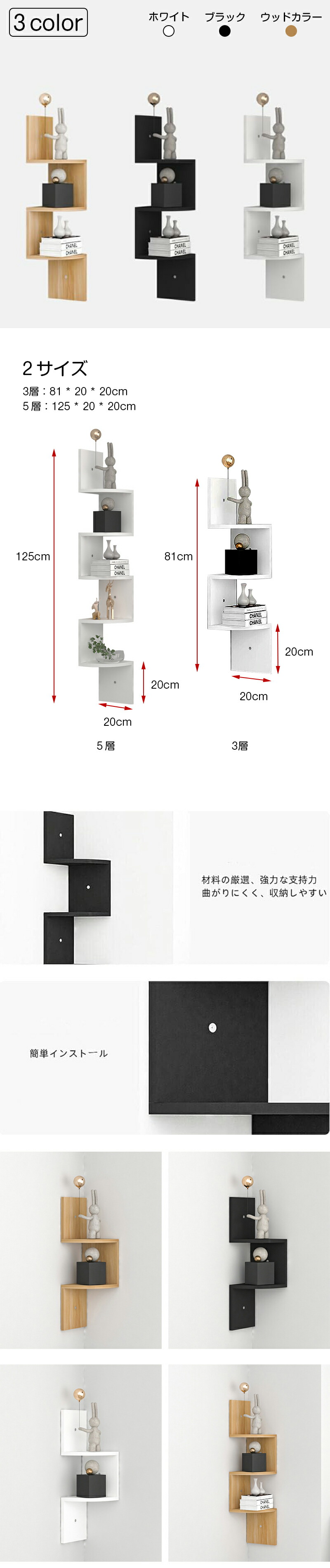 ウォールシェルフ 天然木 三角コーナー S(3層:81 * 20 * 20cm) M(5層:125 * 20 * 20cm)