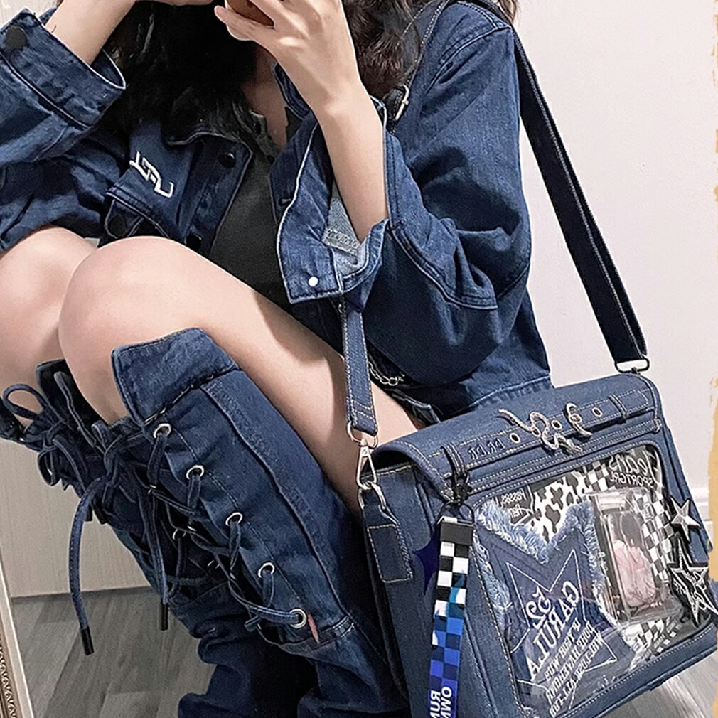 痛バッグ デニム風痛バ トートバッグ バッグ レディースバッグ トートバッグ 早い者勝ち ブルー ダークブルー ブラック