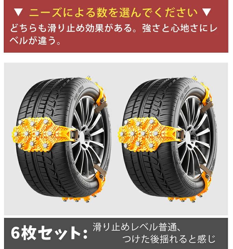タイヤチェーン 簡単 車用 スノーチェーン 滑り止め ジャッキ不要 簡単取付 防災応急 冬季 雪道 凍結 冬 簡易型 雪対策 タイ 6本セット
