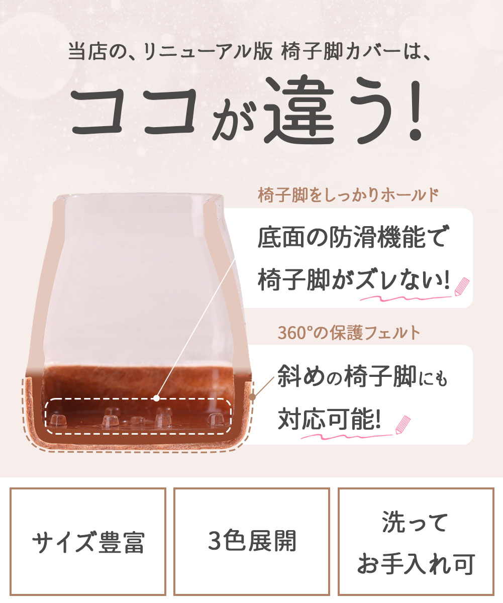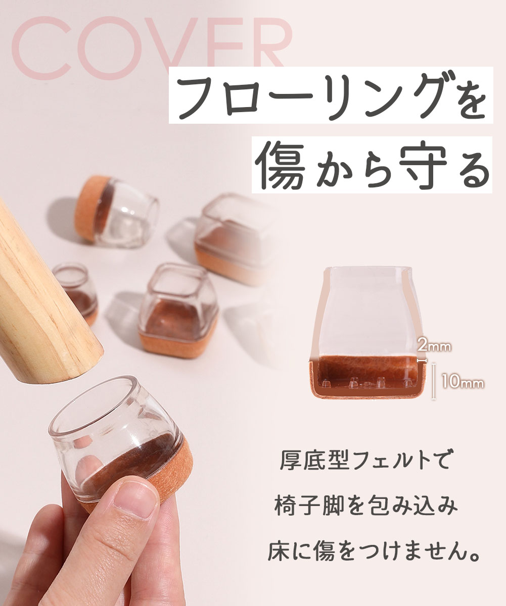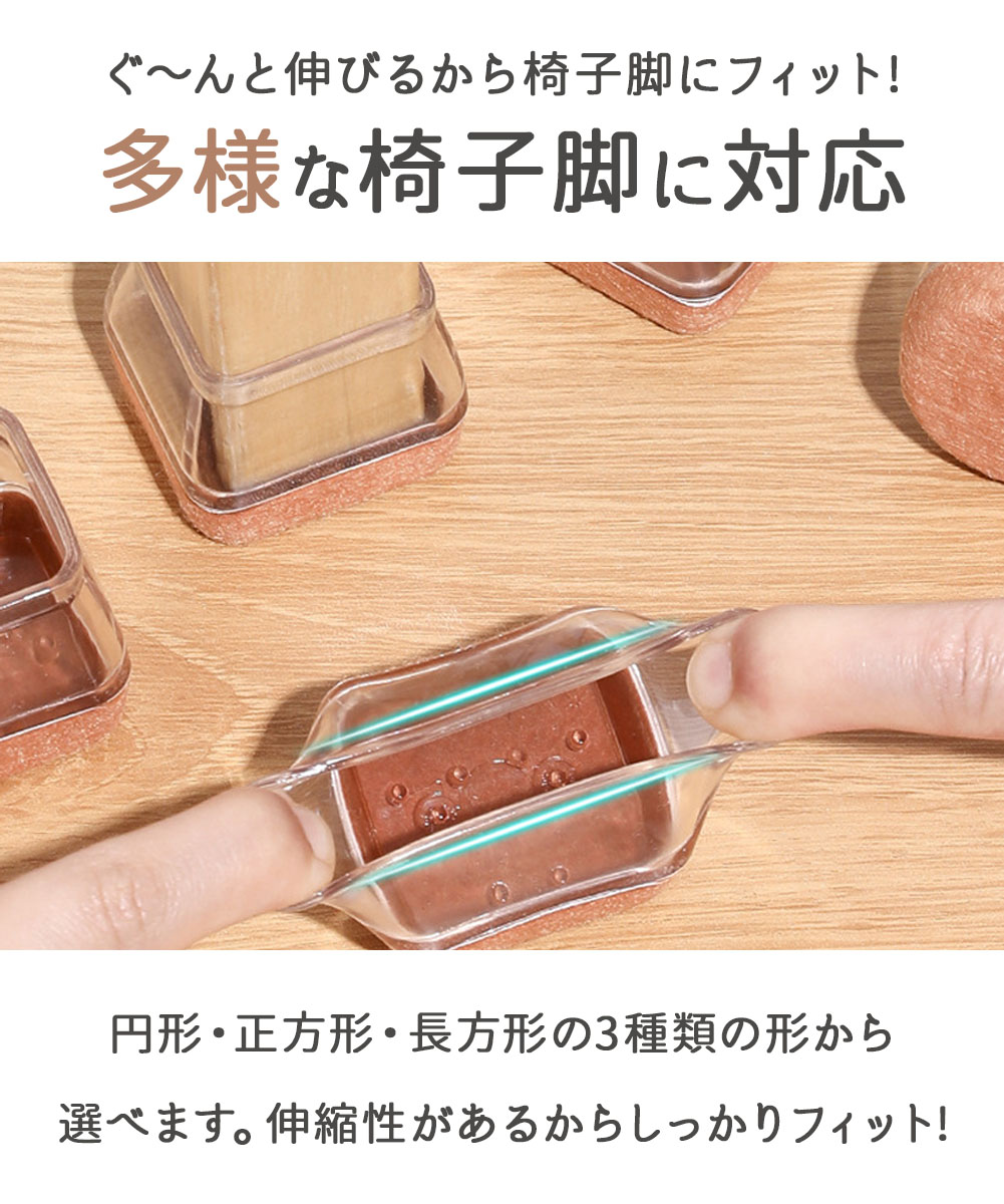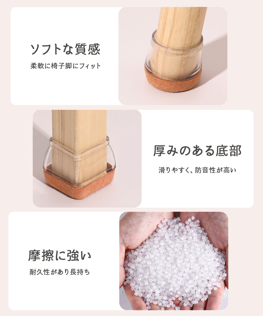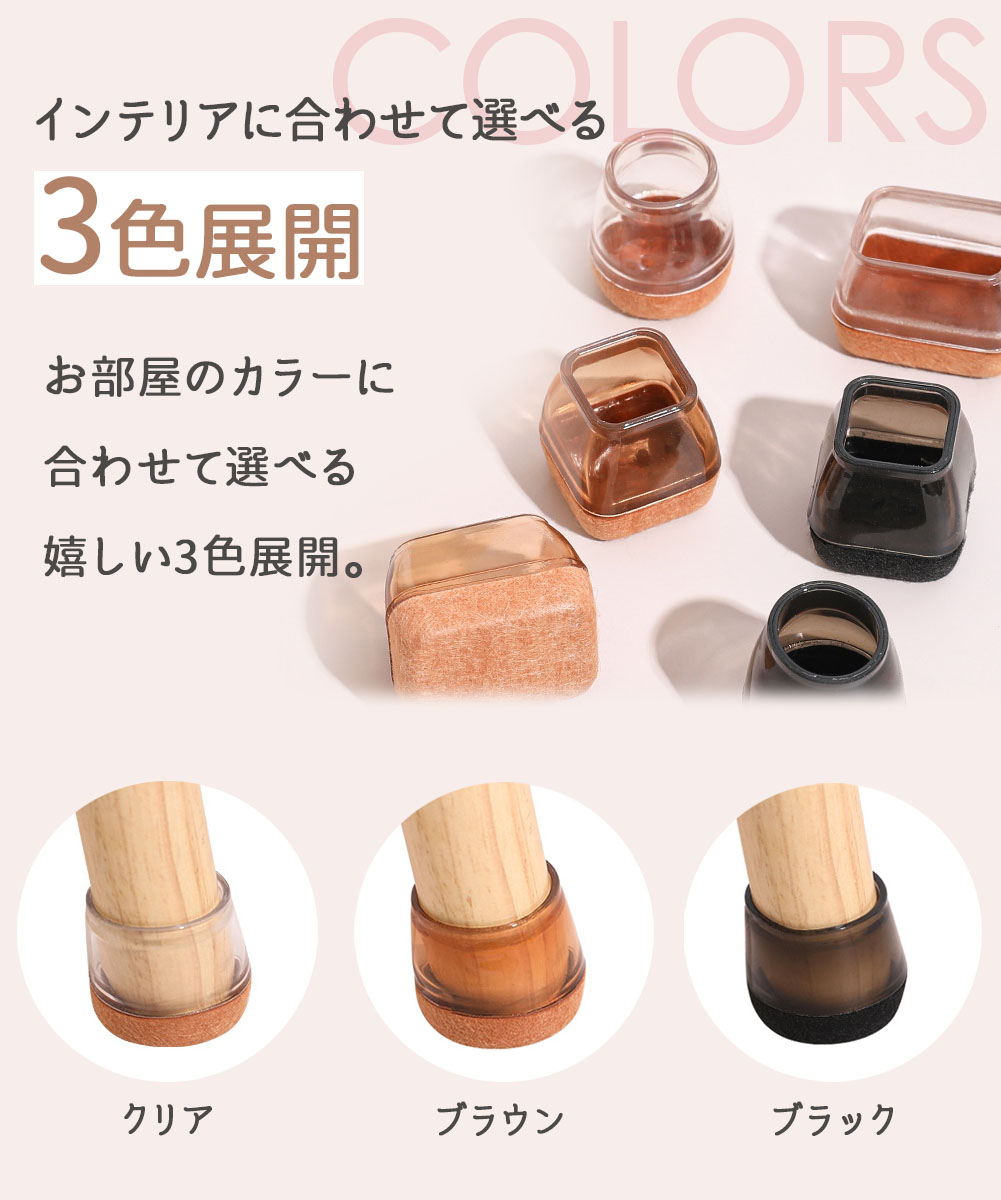 椅子脚カバー シリコン イス 足カバー 4個セット 8個セット 16個セット 20個セット 24個セット クリア ブラウン(半透明) ブラック(半透明) ブラック(フェルトは茶色の旧仕様)