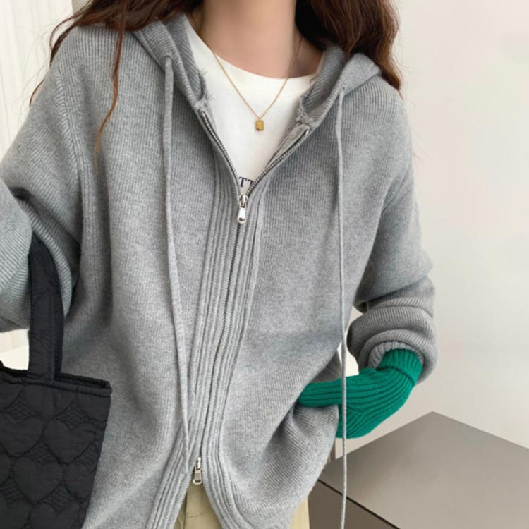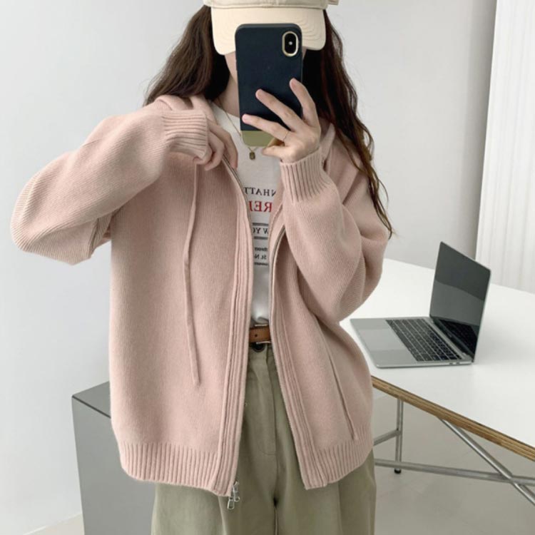 ニットパーカー 無地 レディース 双方 レディースファッション 新作 グレー ベージュ ピンク