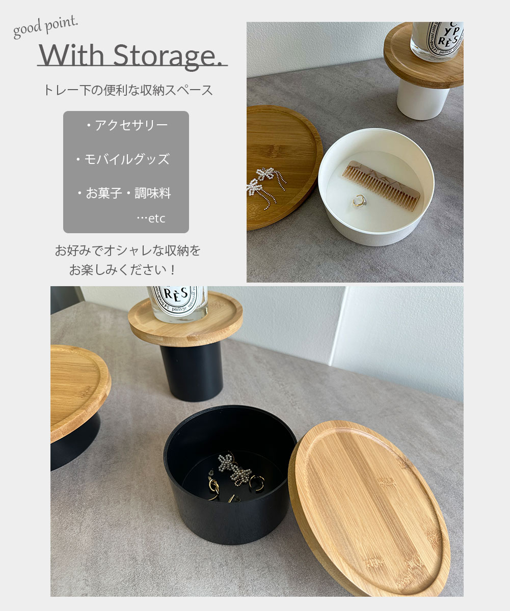収納付きトレー トレイ 脚付き バンブ S M L ホワイト ブラック