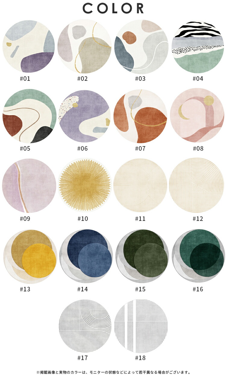 ラグマット ラグ おしゃれ 北欧 円形 #01 #02 #03 #04 #05 #06 #07 #08 #09 #10 #11 #12 #13 #14 #15 #16 #17 #18 直径80cm 直径100cm 直径120cm 直径140cm 直径160cm 直径180cm 直径200cm 直径240cm 直径300cm