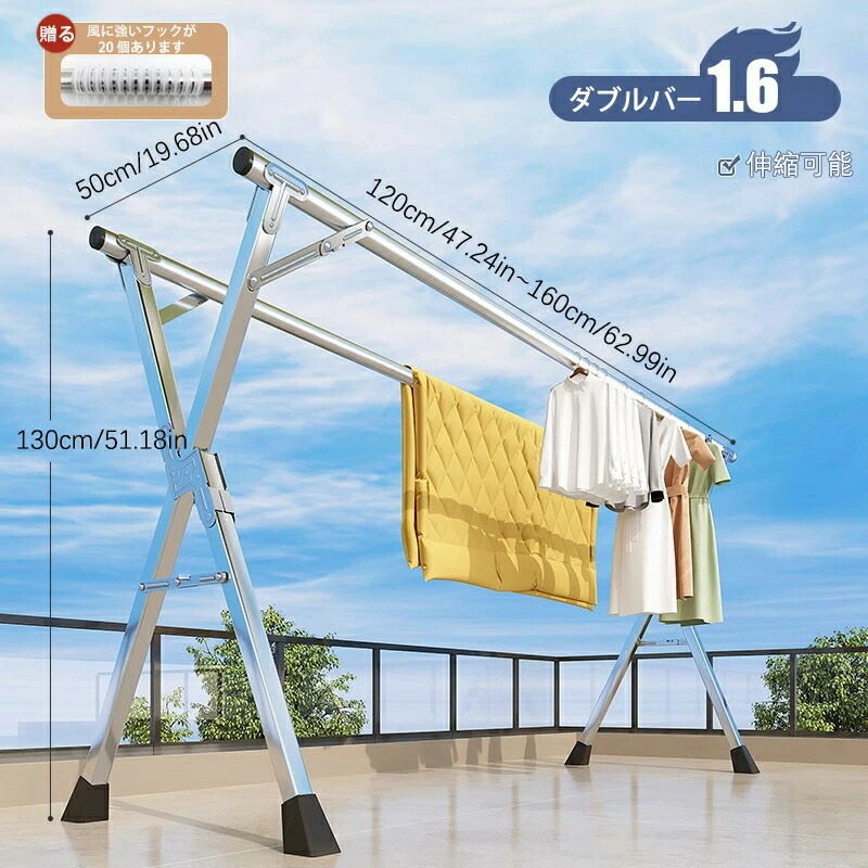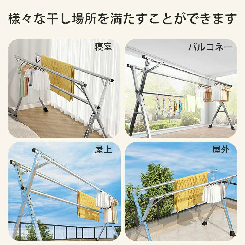 物干し ステンレス製 伸縮式多機能布団 洗濯用品 物干しスタンド 新登場! ダブルバー 三本バー