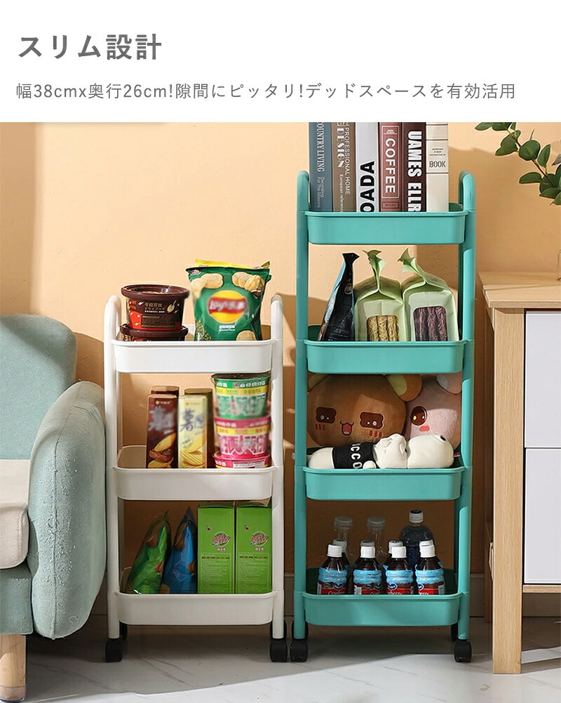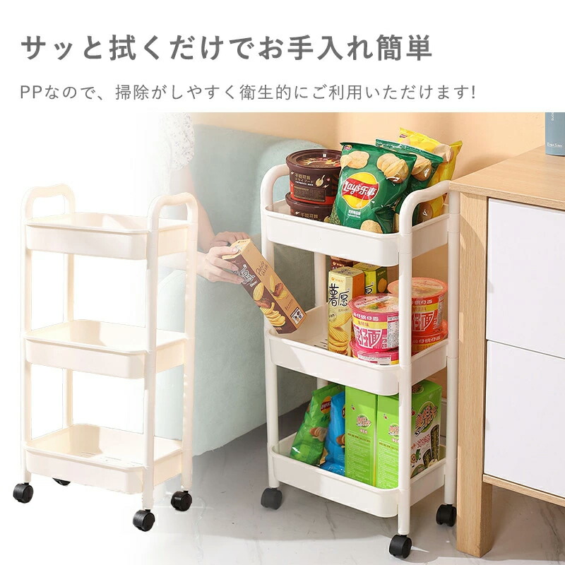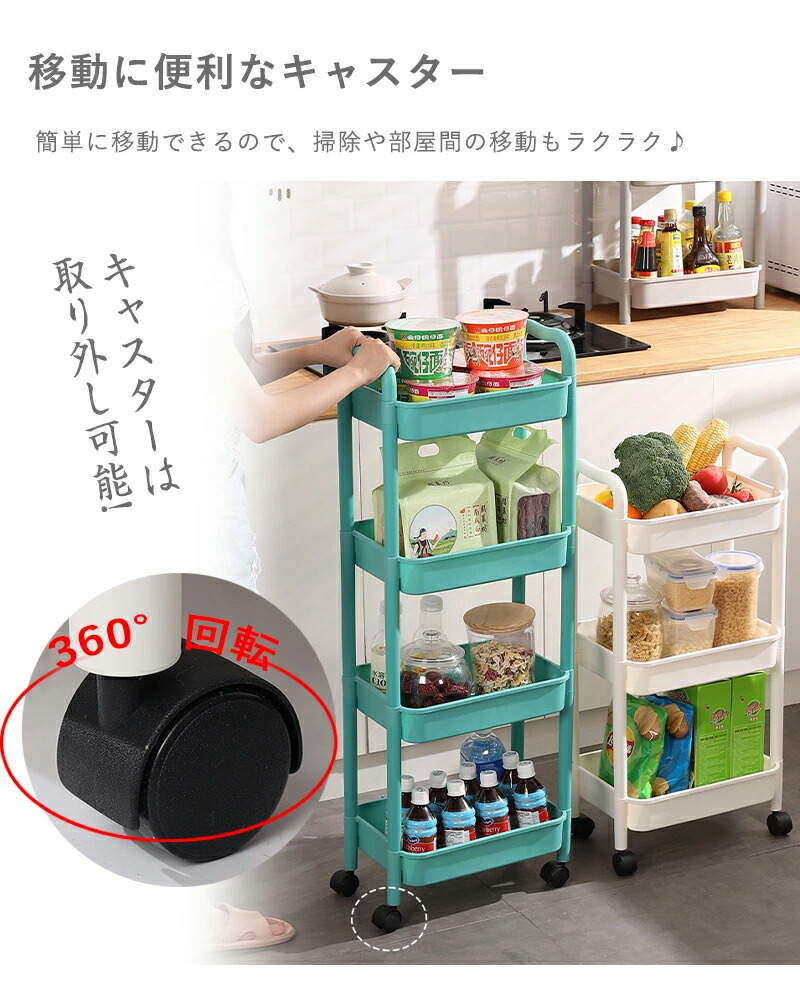キッチンワゴン キャスター付き キッチ オフホワイト グレー グリーン 2段 3段 4段