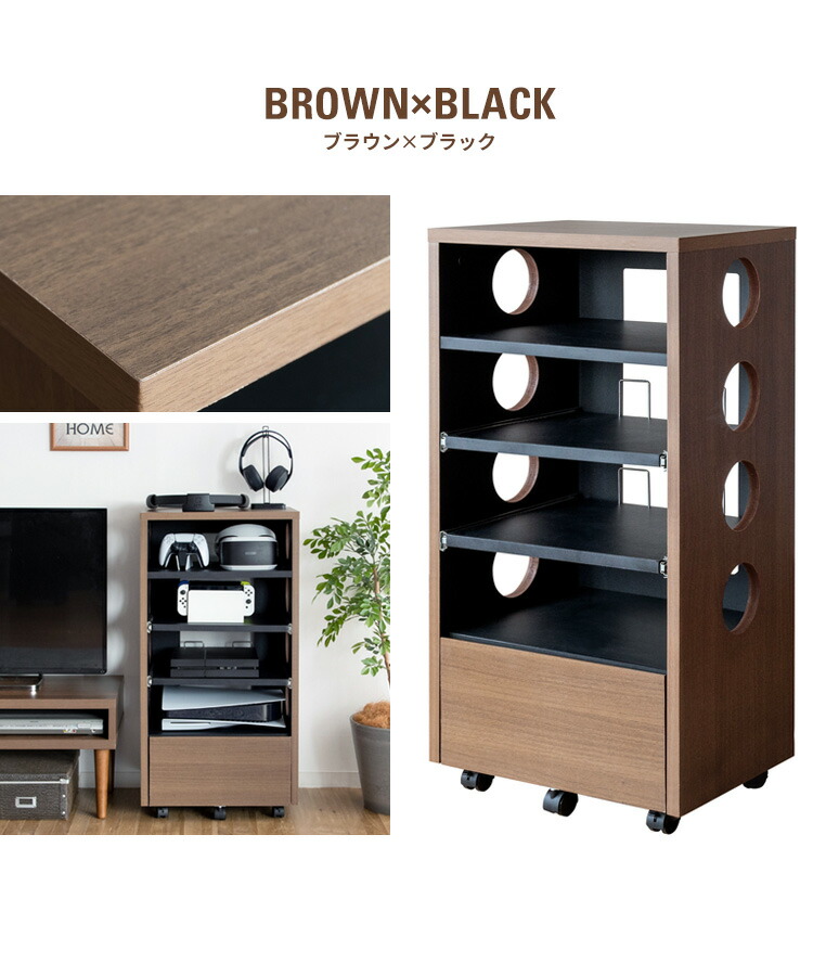 ゲーム機収納 ラック ルーター収納 お ブラウン/ブラック ホワイト×ブラック ブラック