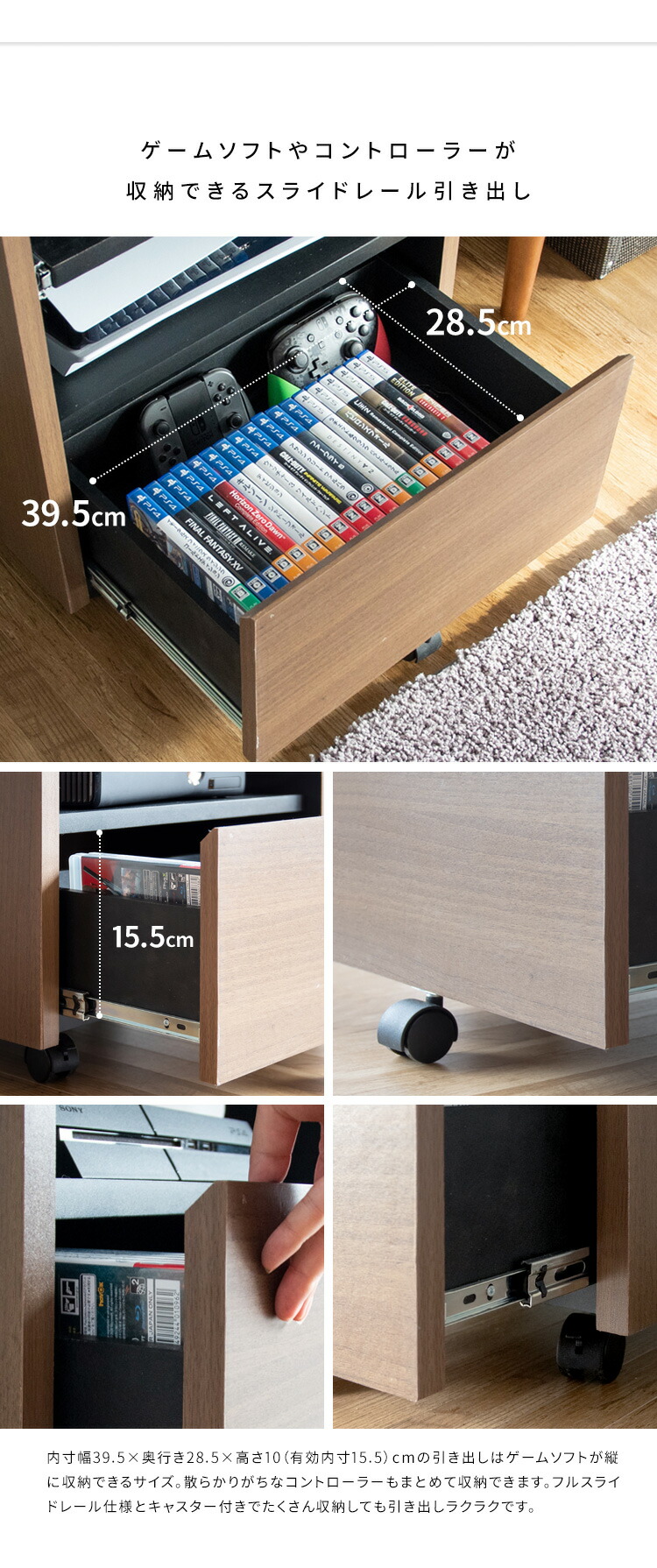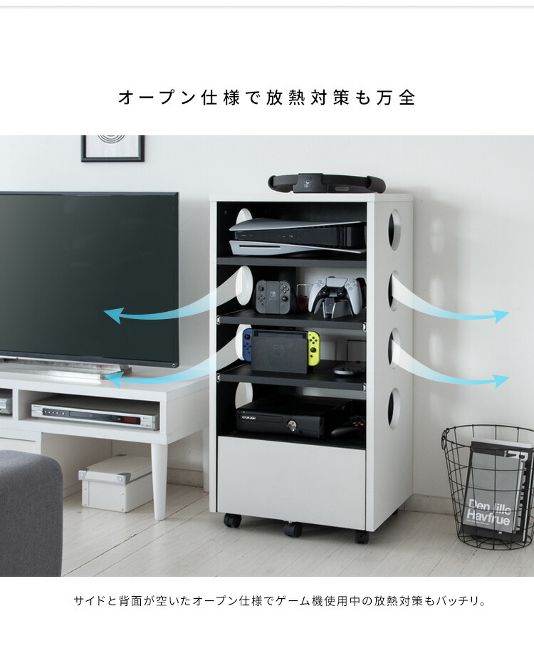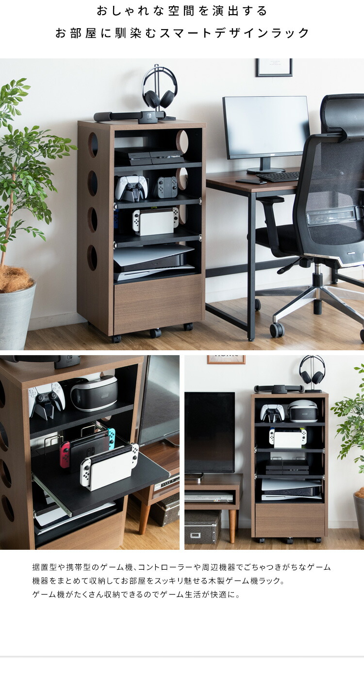 ゲーム機収納 ラック ルーター収納 おしゃれ ps5 switch スイッチ 収納棚 木製 キャスター付き ゲーミングラック ゲーム機ラック ゲームソフト ヘッドセット 隙間収納 スリ コントローラー