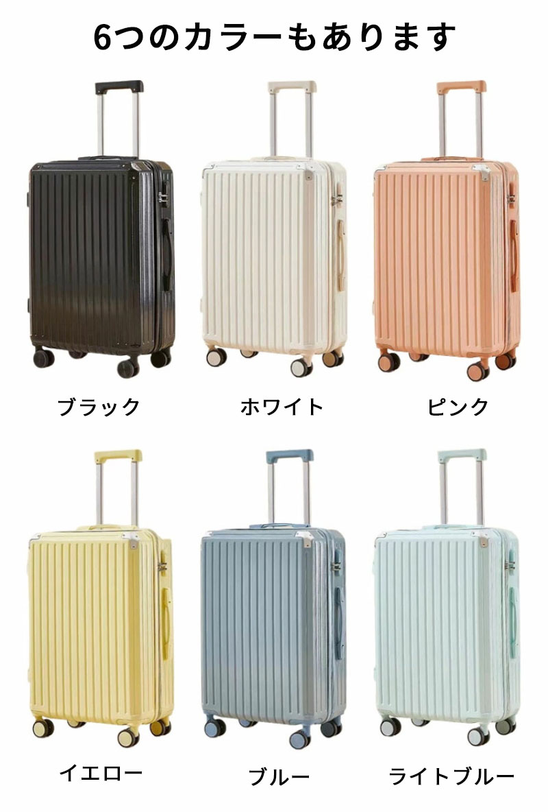 スーツケース 6色 シンプル キャリー バッグ 小物 ブランド雑貨 特集 ブラック ホワイト ピンク イエロー ブルー ライトブルー 20インチ 24インチ 26インチ