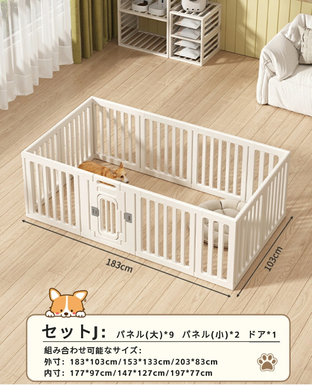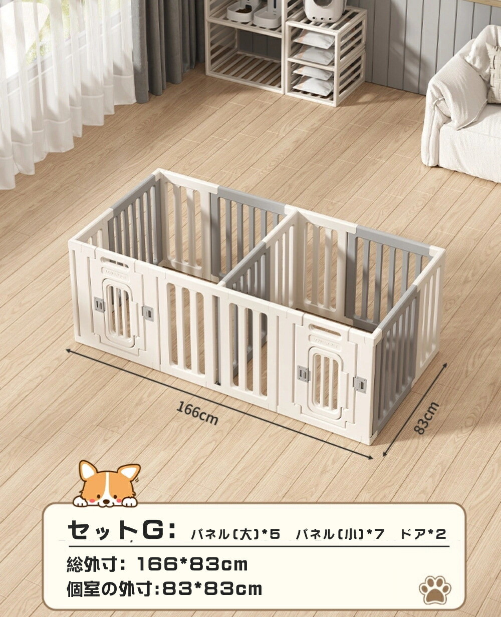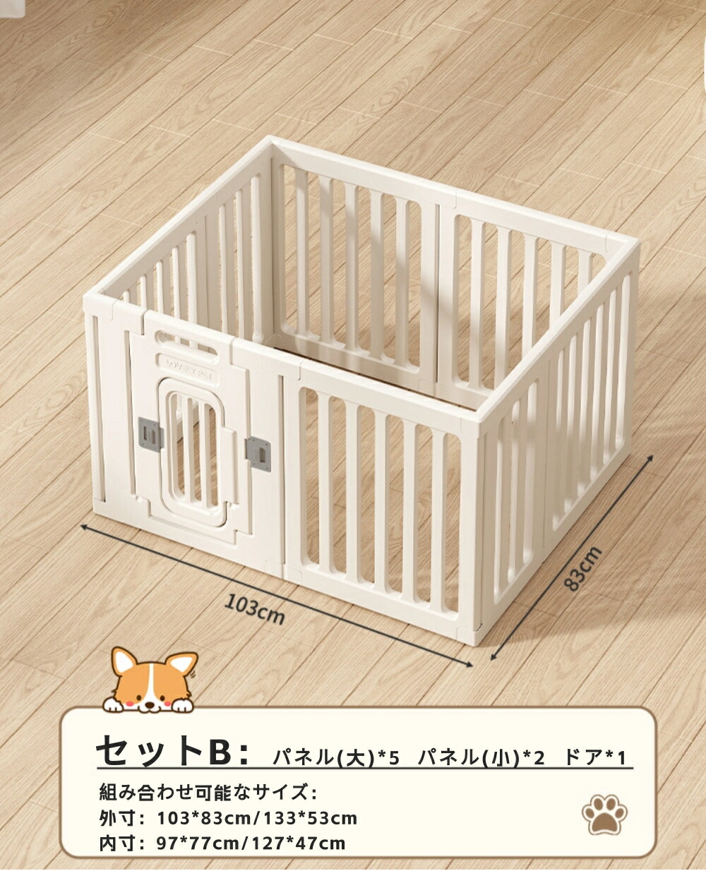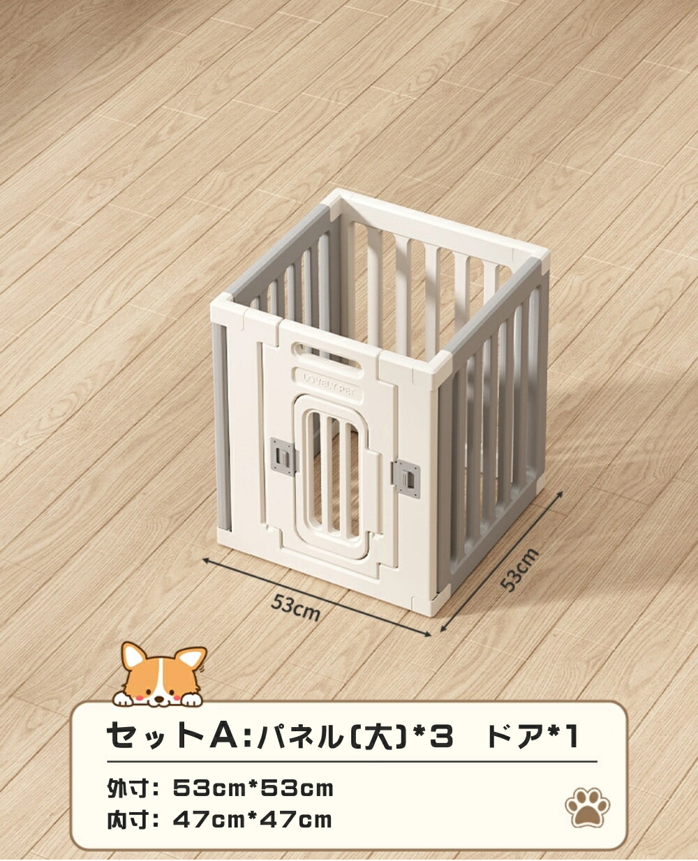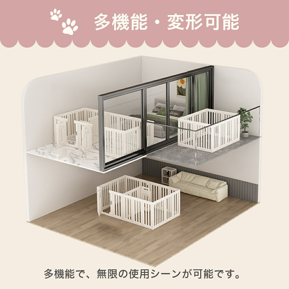 ・自由に組み合わせ可能なパネルは、小型犬から中型犬までのサイズに対応し、ペットの成長や活動量に合わせて最適な空間を作ることができます。