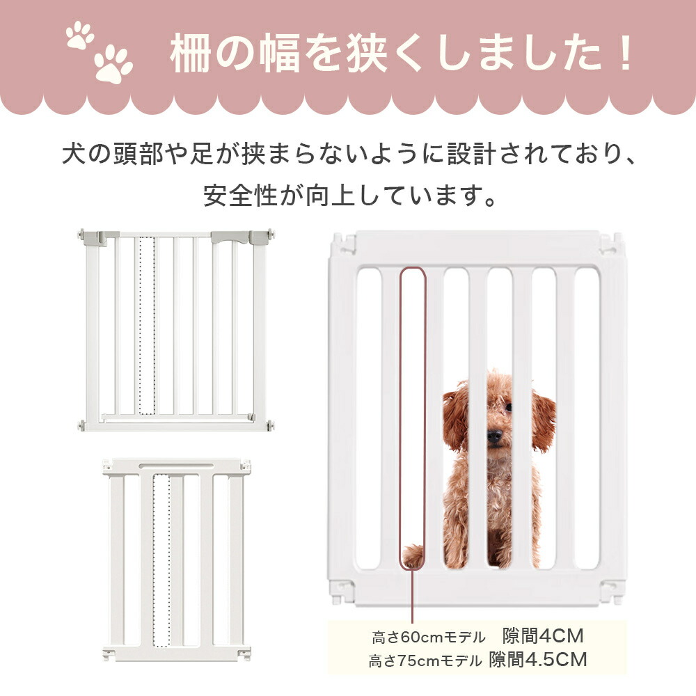・ 高さ60cmまたは75cmのオプションがあり、小型犬から中型犬までの脱走防止に効果的です。