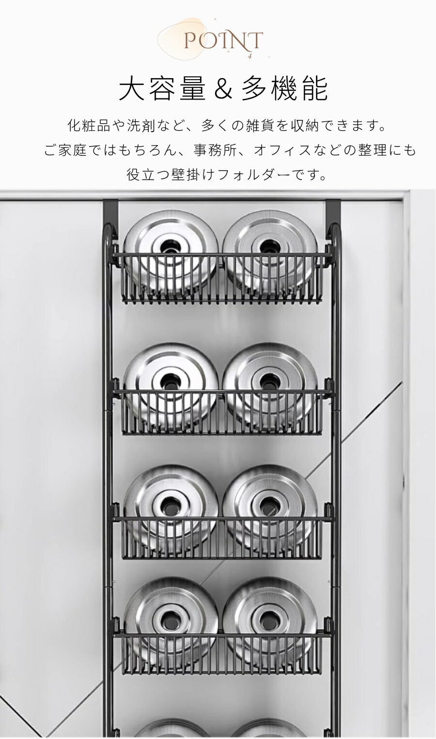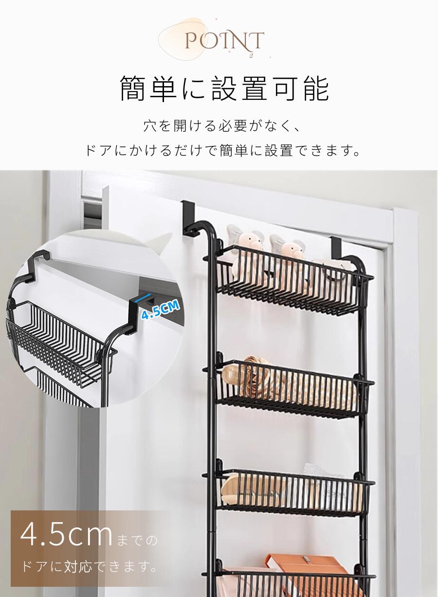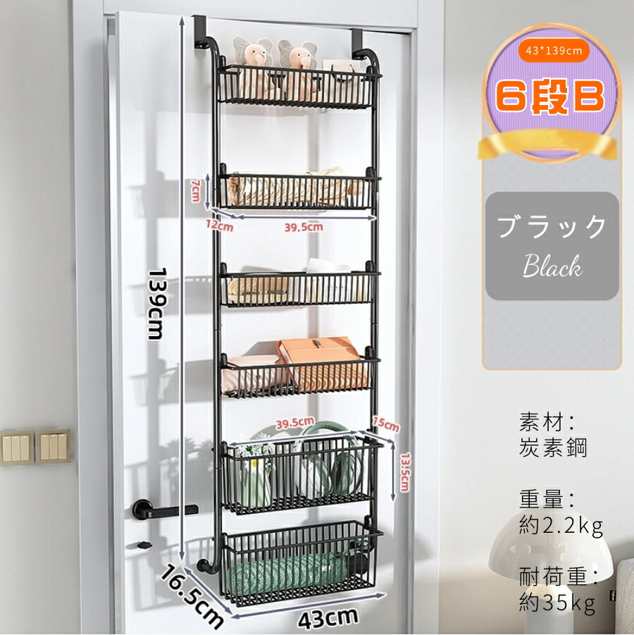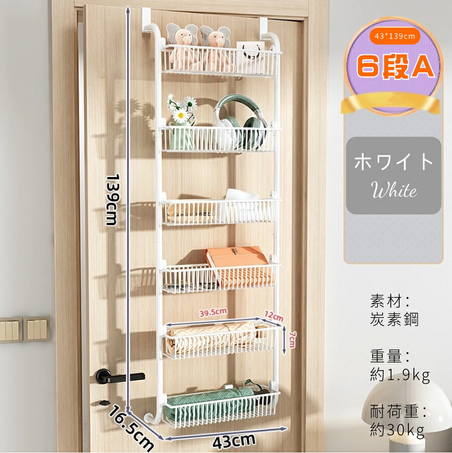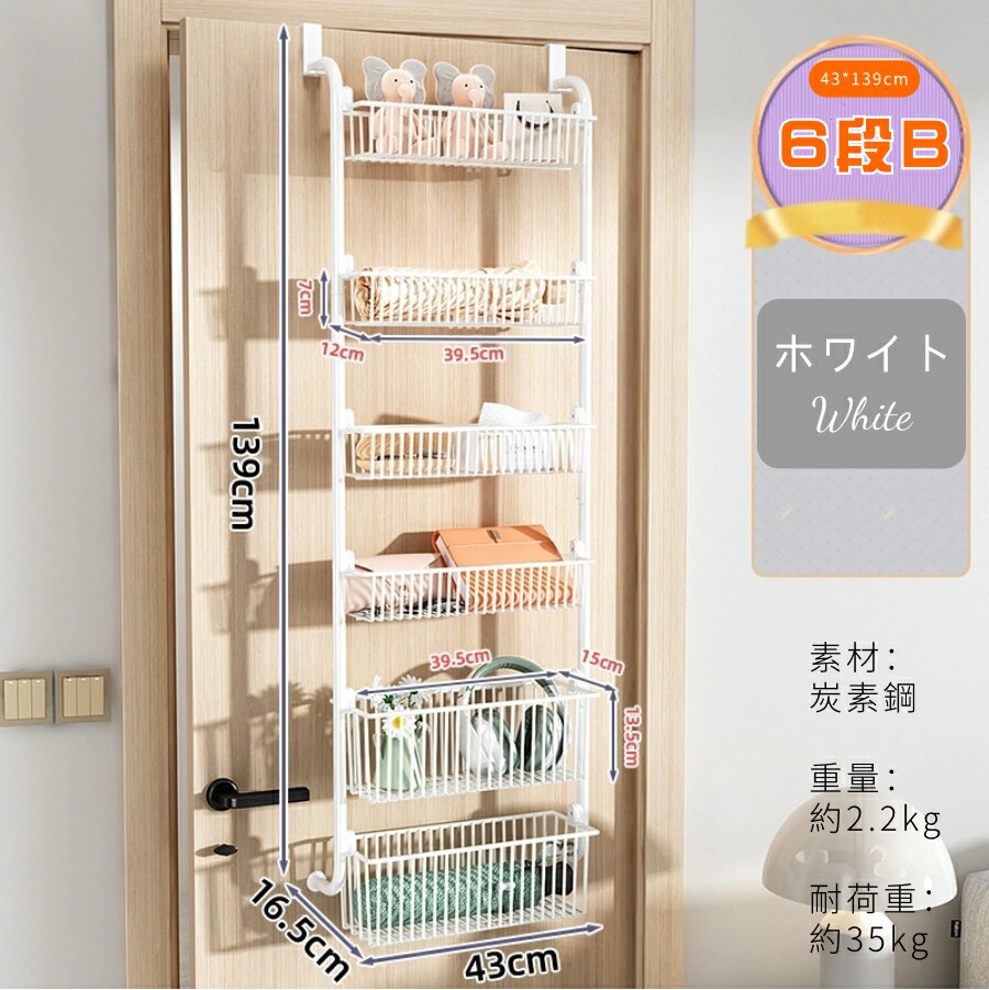 ウォールポケット ドア掛け収納ラック 4段 5段 6段B 6段A ホワイト ブラック