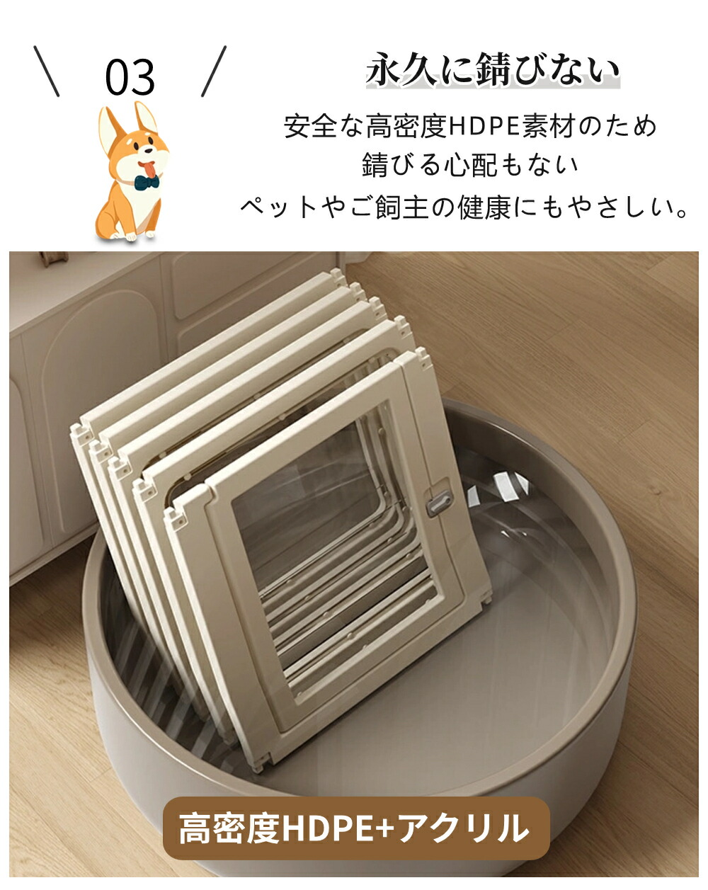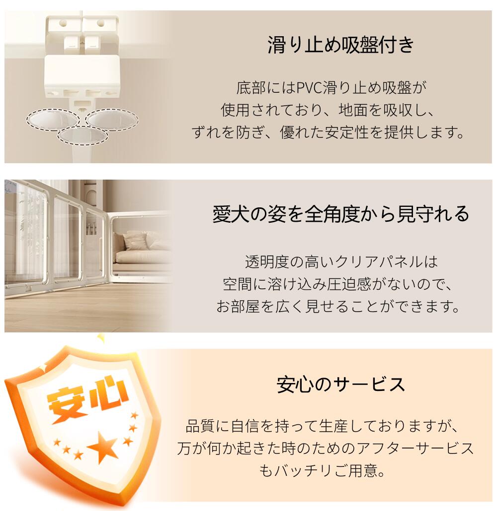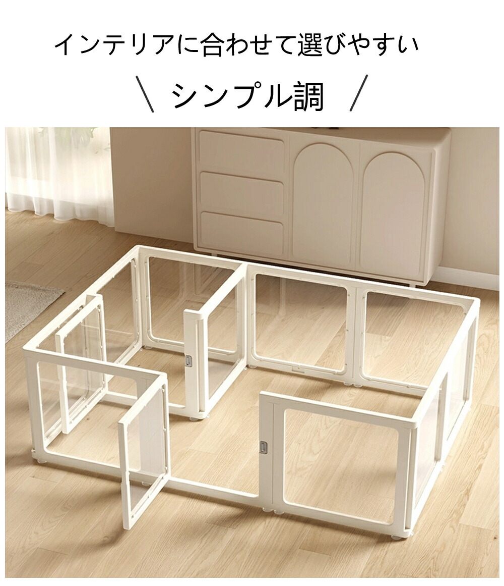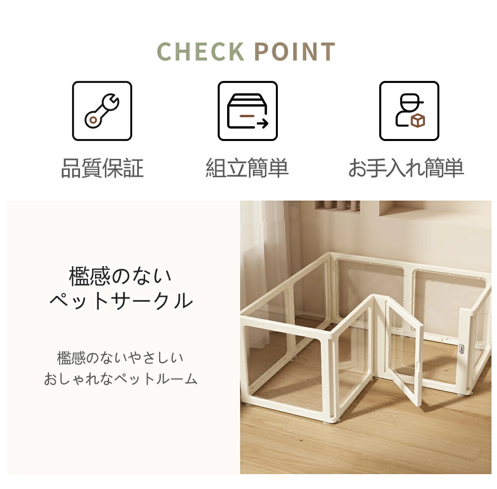 ・このペットサークルは、透明なアクリル素材を使用し、檻感を感じさせないデザインが特徴です。