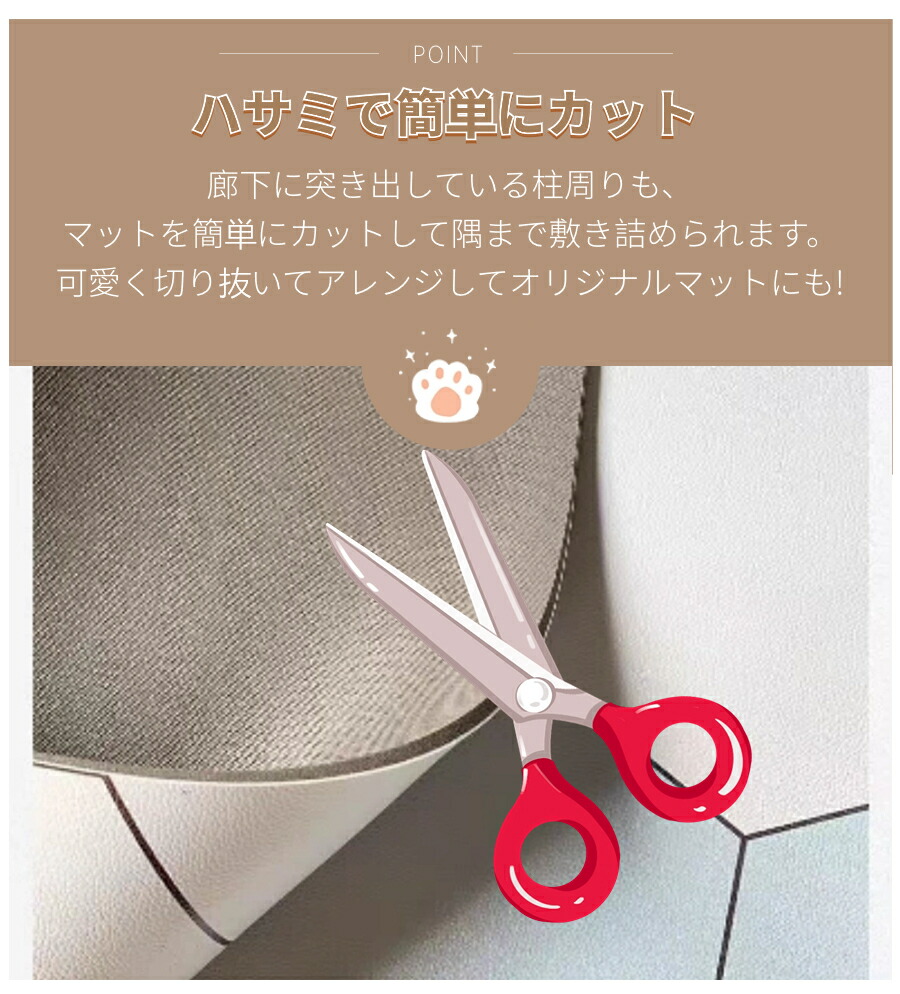 ・廊下やお部屋に突き出している柱の周りも、ハサミで簡単にカットできるので、しっかりと敷き詰められます。