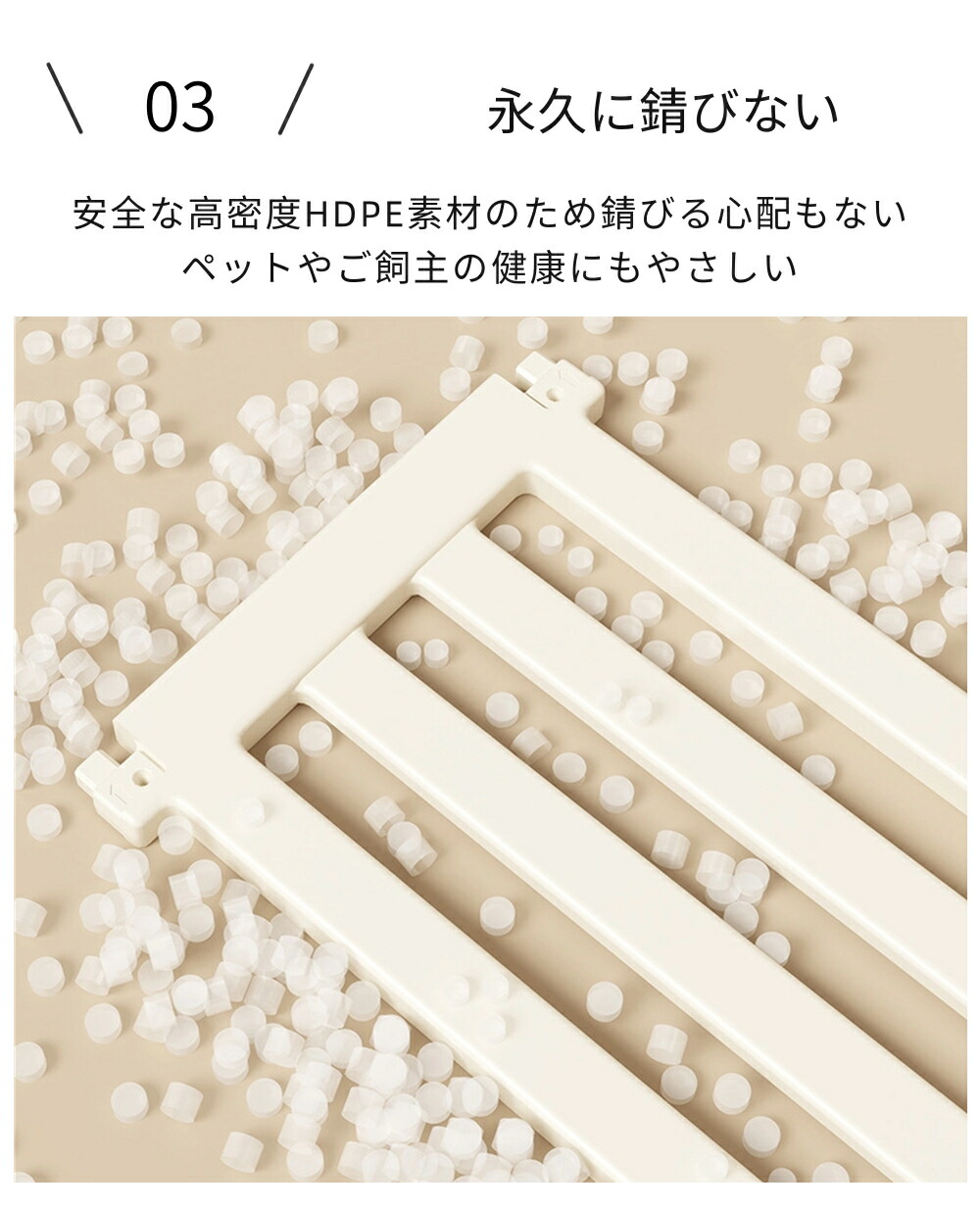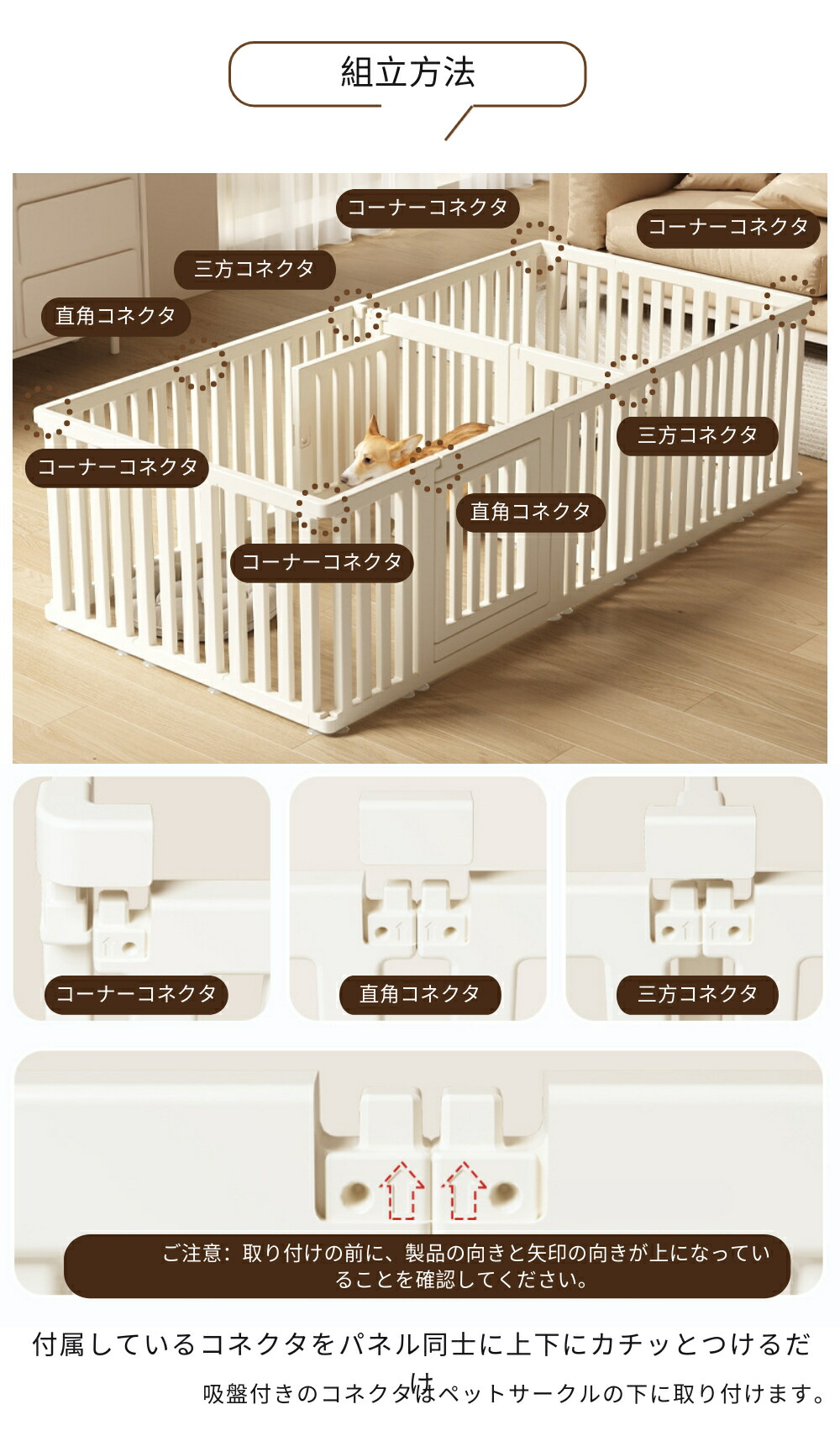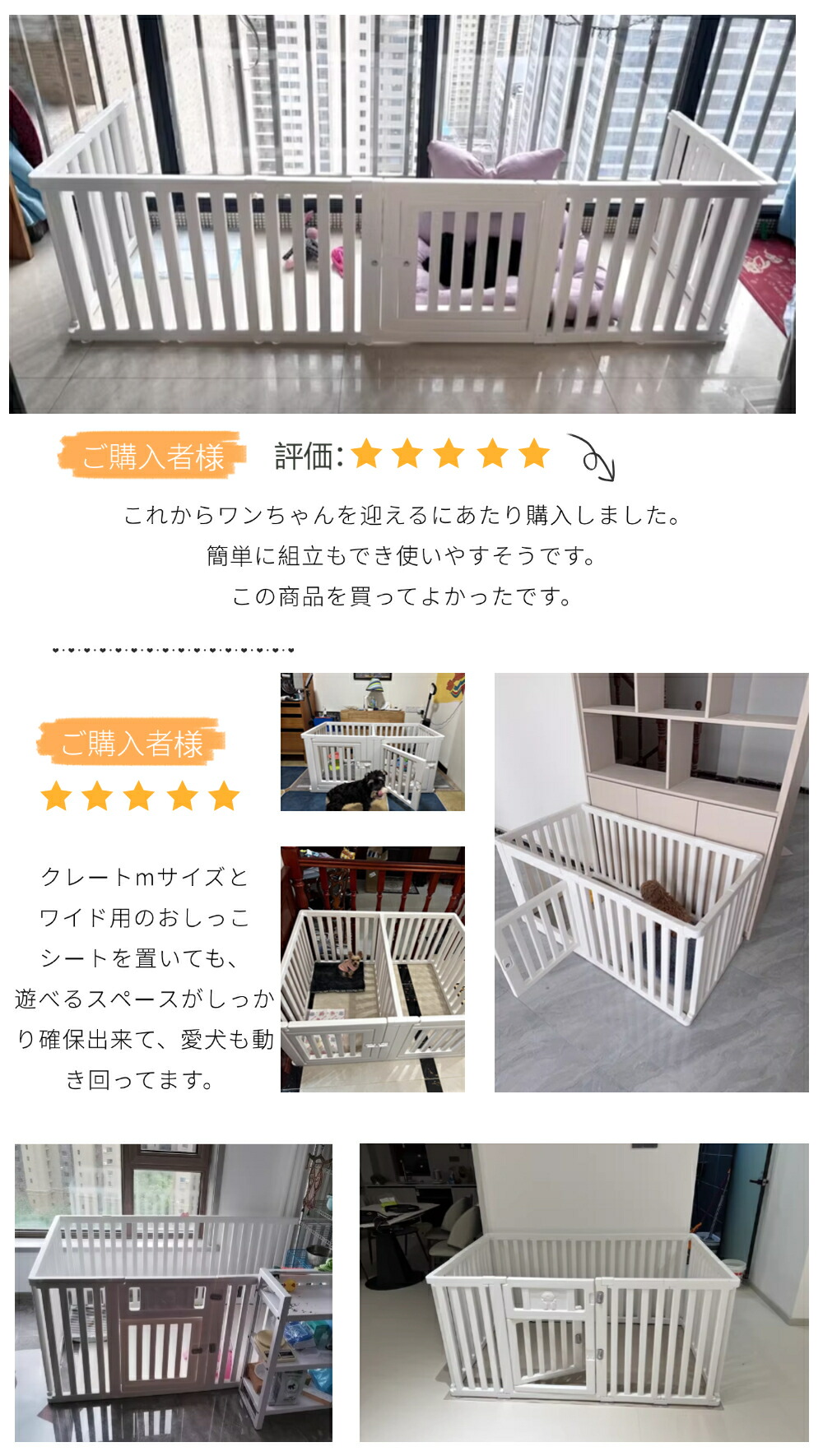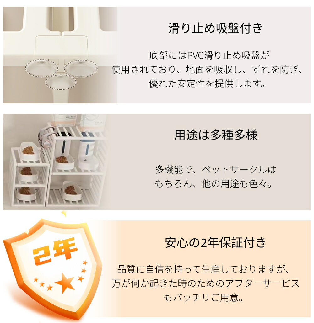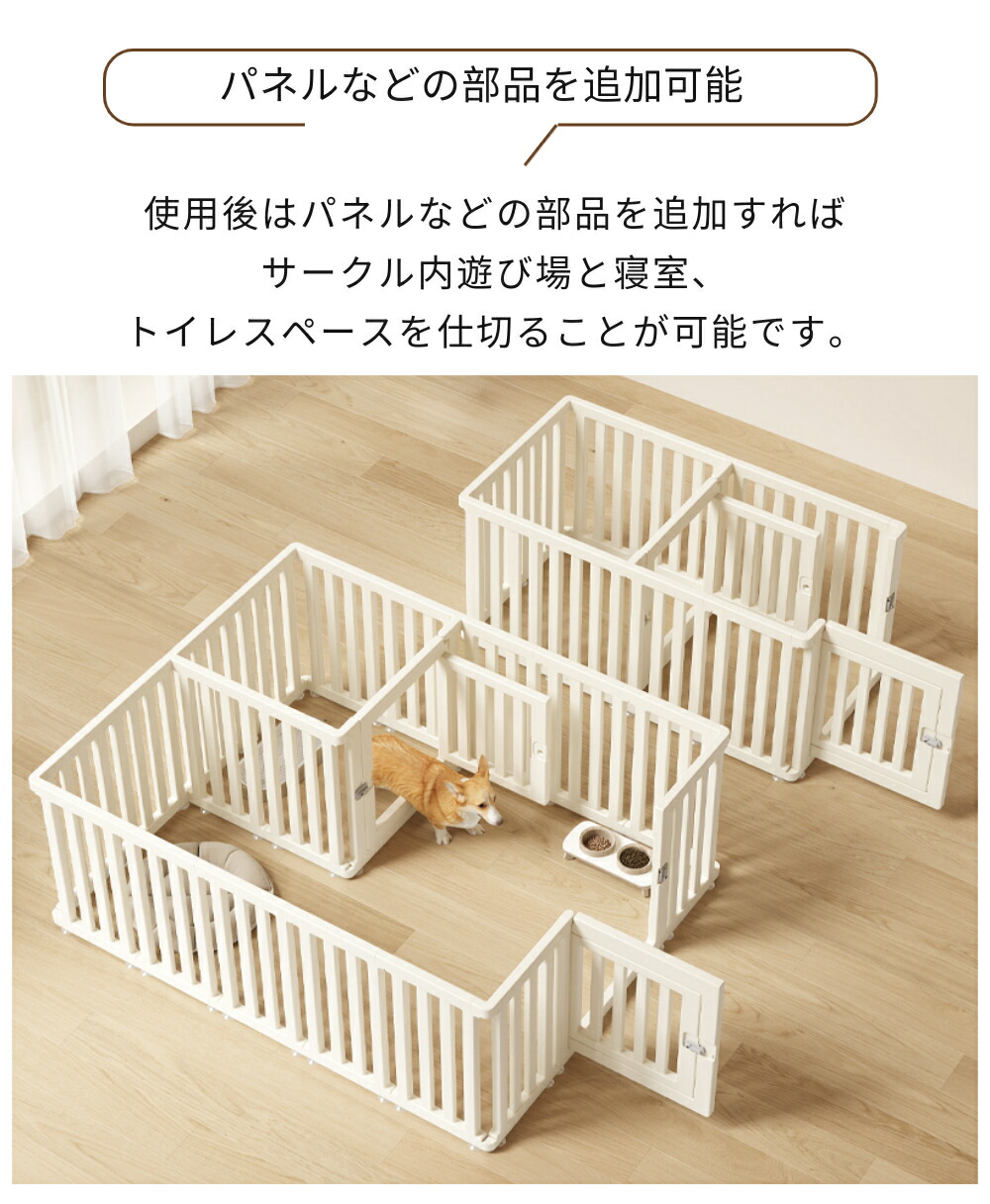 ・自由に組み合わせ可能なパネルは、小型犬から中型犬までのサイズに対応し、ペットの成長や活動量に合わせて最適な空間を作ることができます。