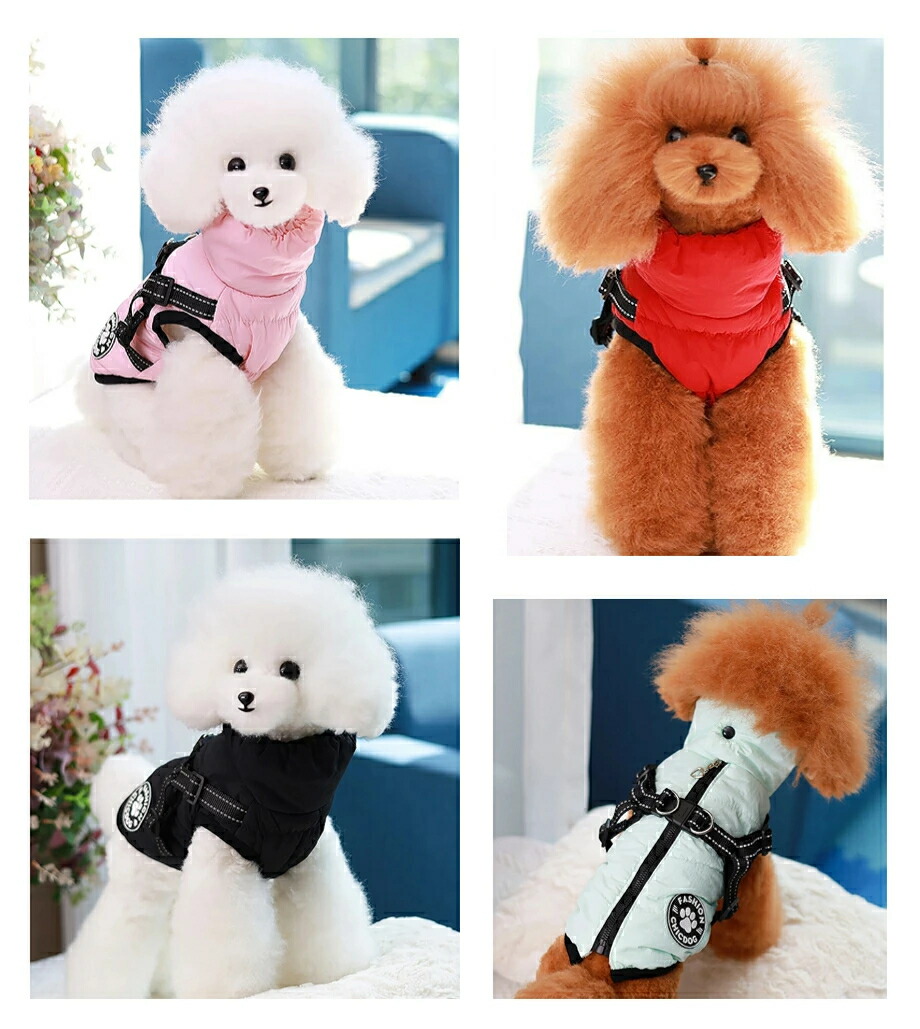 犬 服 ダウン風 ハーネス ジャケット 犬用品 ドッグウェア ベスト 続々登場 XS S M L XL XXL ピンク グリーン レッド ブラック