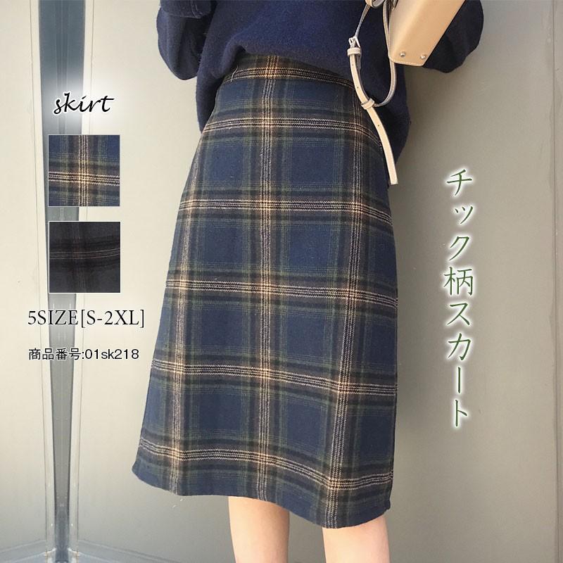 スカート 秋冬 コーデ 膝丈 チェック レディースファッション 特集 A B S M L XL 2XL