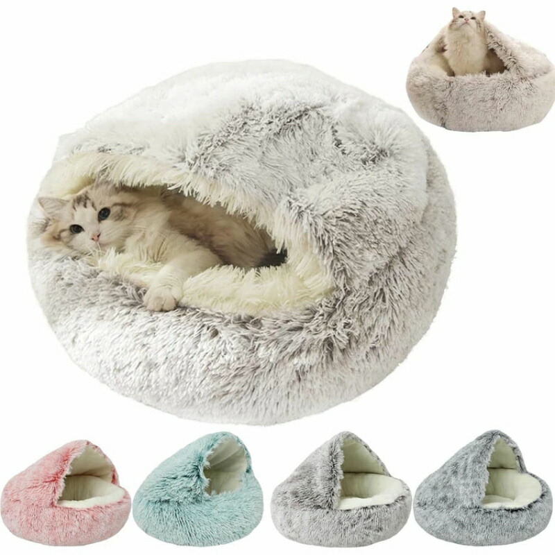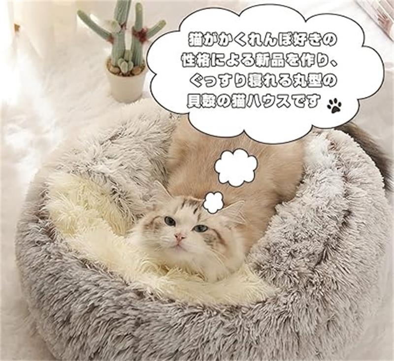 猫 ベッド ハウス ドーム型 貝殻 暖 ペット ペットグッズ 通販 短毛 長毛 ピンク グレー ブラウン グリーン