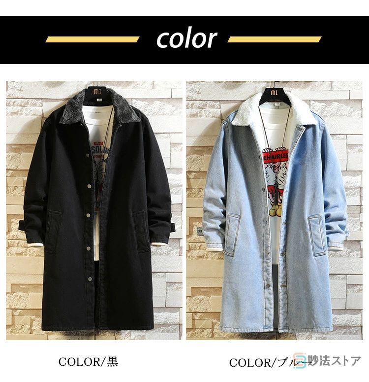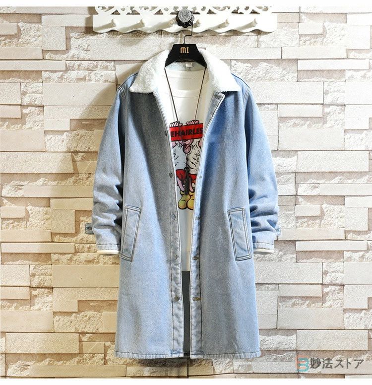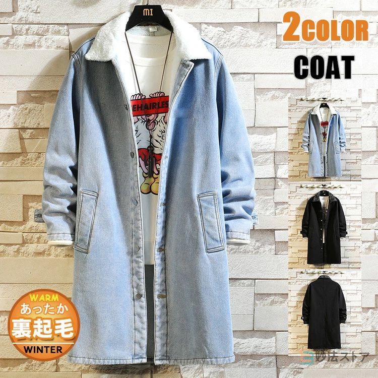 裏ボア デニム コート メンズ 暖か 裏起毛 ロングコート デニムコート あったか 防寒 ロング丈 冬服 アウター ロングジャケ 無地