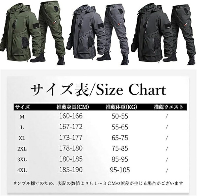 メンズ 冬用作業着セット 裏起毛 防風 コート ジャケット 早い者勝ち ブラック グリーン グレー M L XL 2XL 3XL 4XL