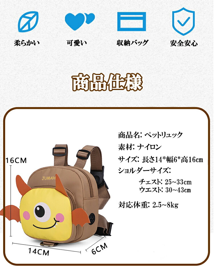 お散歩バック ハーネス 小型犬 可愛い リュック 犬 リード 悪魔 柄 着脱 し やすい 服 引っ張り メッシュ ウェア おしゃれ 胴輪 抜けにくい ダブル トイプードル ペット 春夏秋冬 ロック