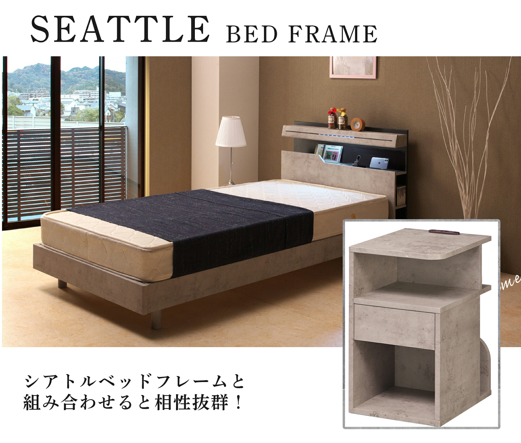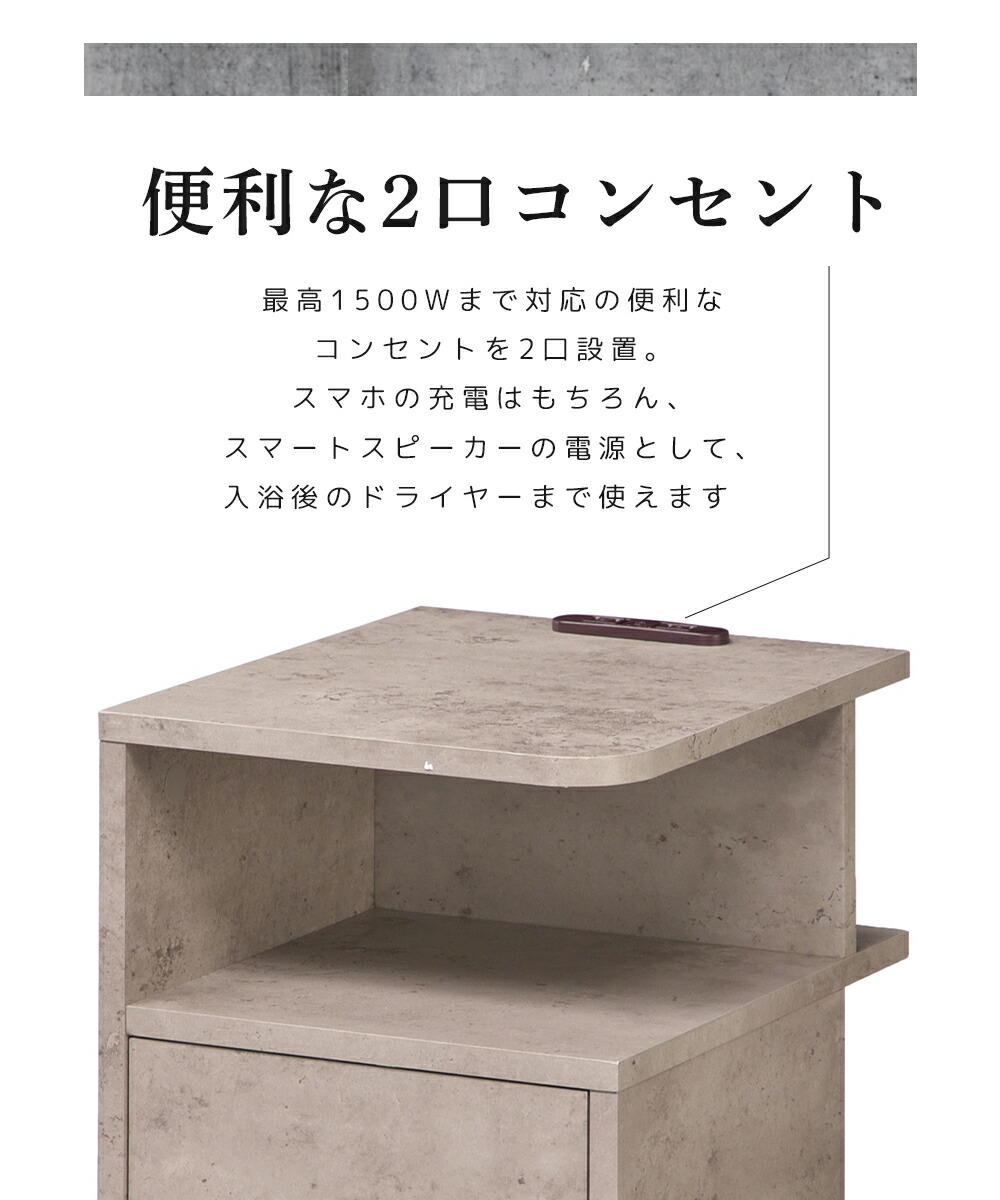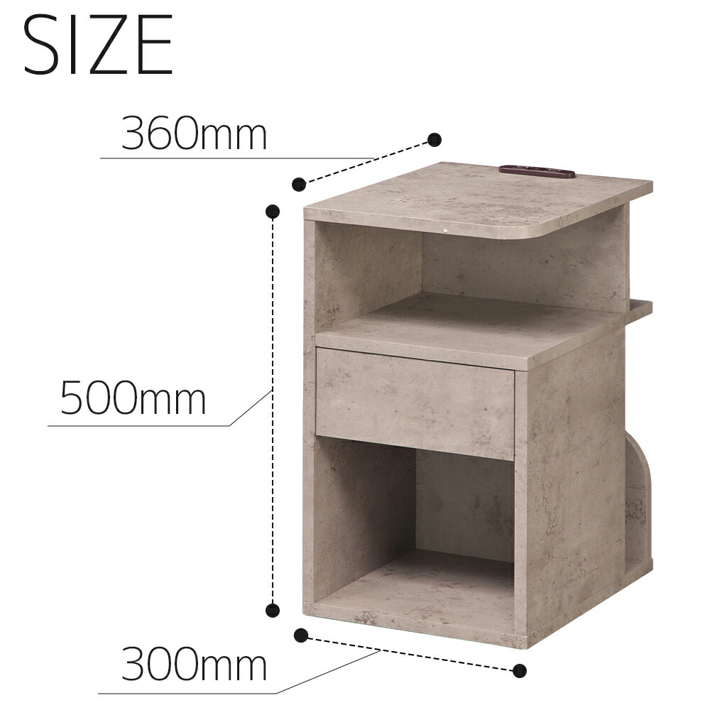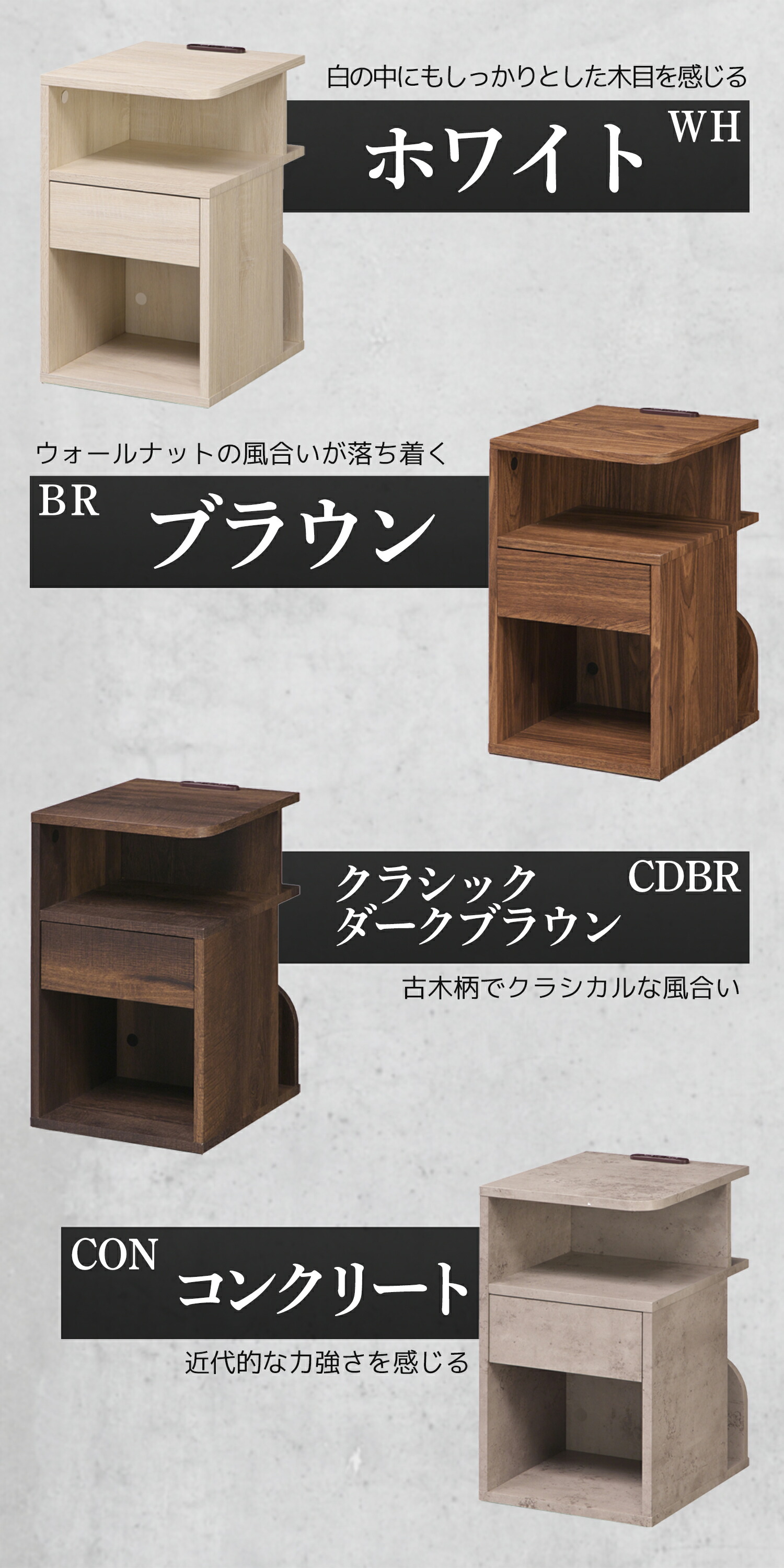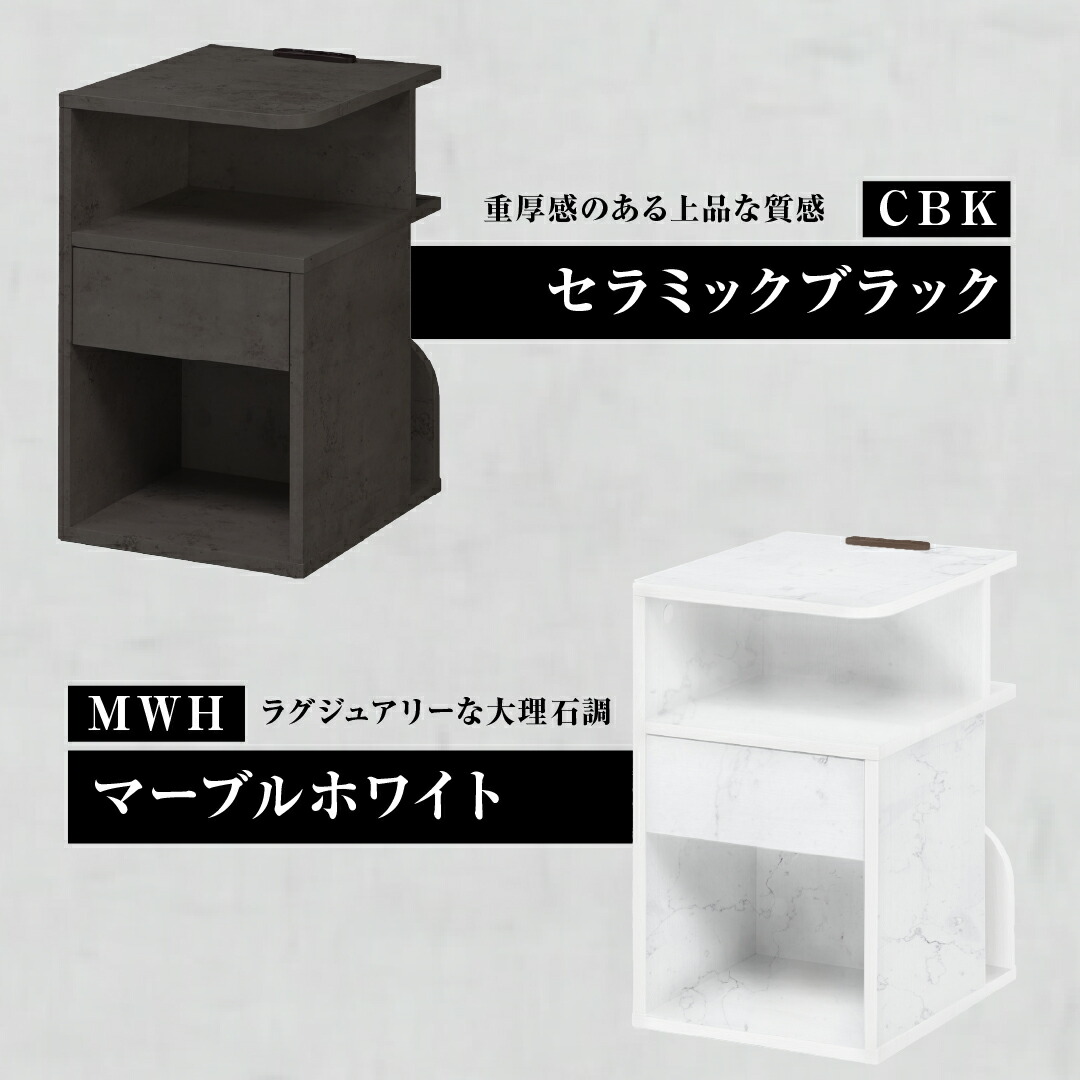 背面収納付 サイドテーブル ベッド横 角丸 直角 ホワイト WH ダークブラウン DBR コンクリート CON ブラウン BR ナチュラル NA グレー GY クラシックダークブラウン CDBR セラミックブラック CBK マーブルホワイト MWH