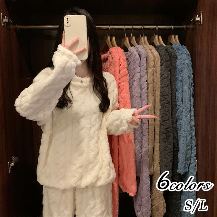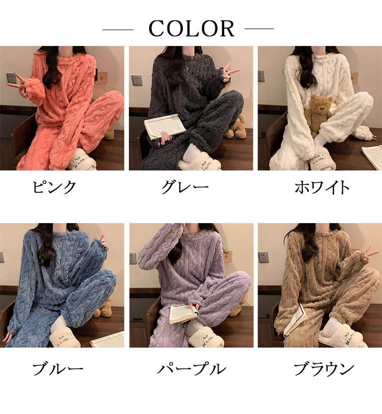 ルームウェア レディース 冬 春 長袖 インナー 下着 ナイトウエア 特集 ピンク グレー ホワイト ブルー パープル ブラウン M L