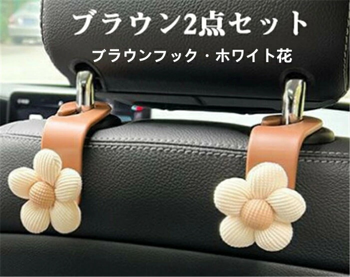 スペースフック 花 車 収納グッズ 車 ホワイト1点 ブラウン1点 ブラウン2点セット ホワイト2点セット ランダム4点セット-ホワイト ランダム4点セット-ブラウン