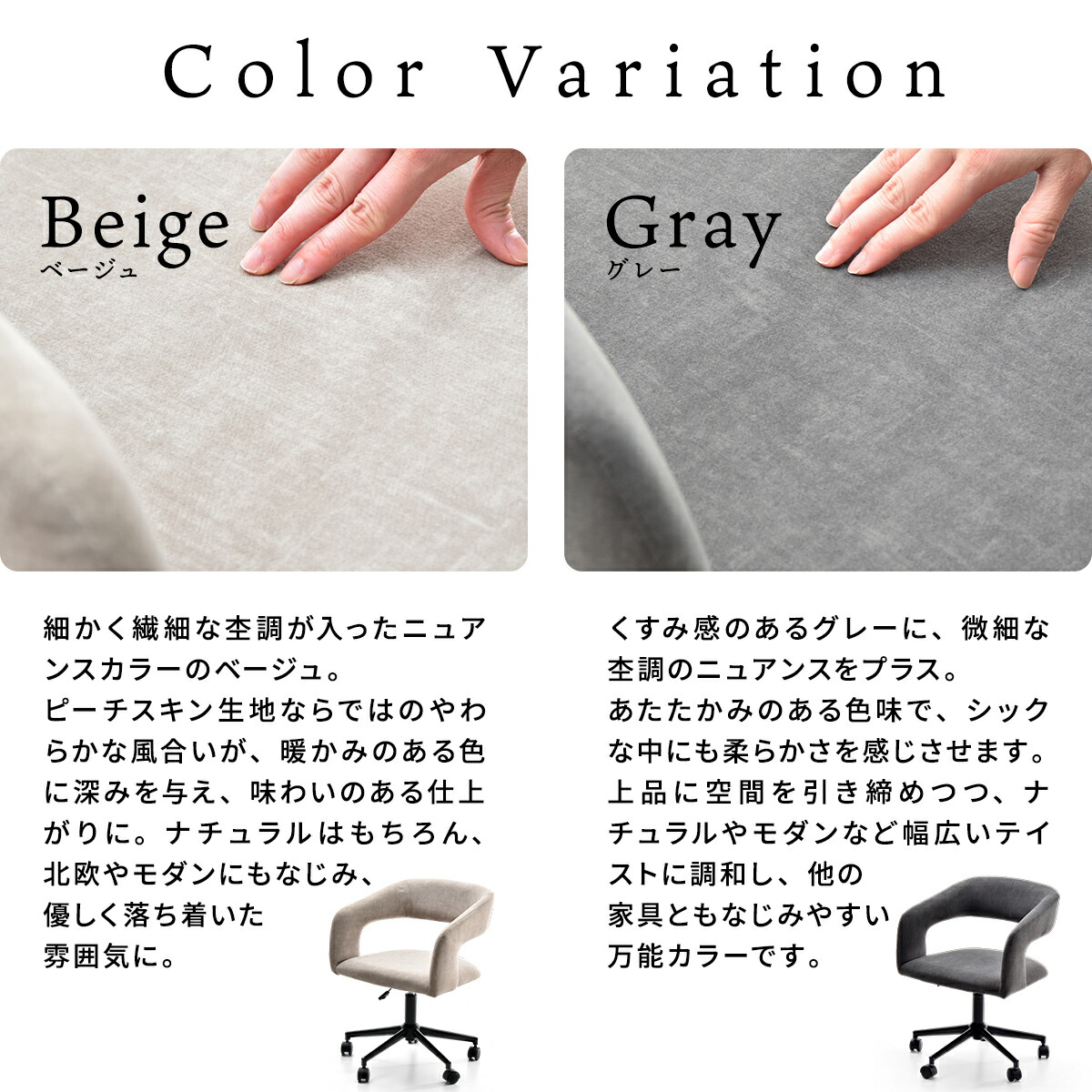 触れるたびに心地よいピーチスキン生地を使用し、カラーはインテリアに馴染むベージュとグレーの2色展開。