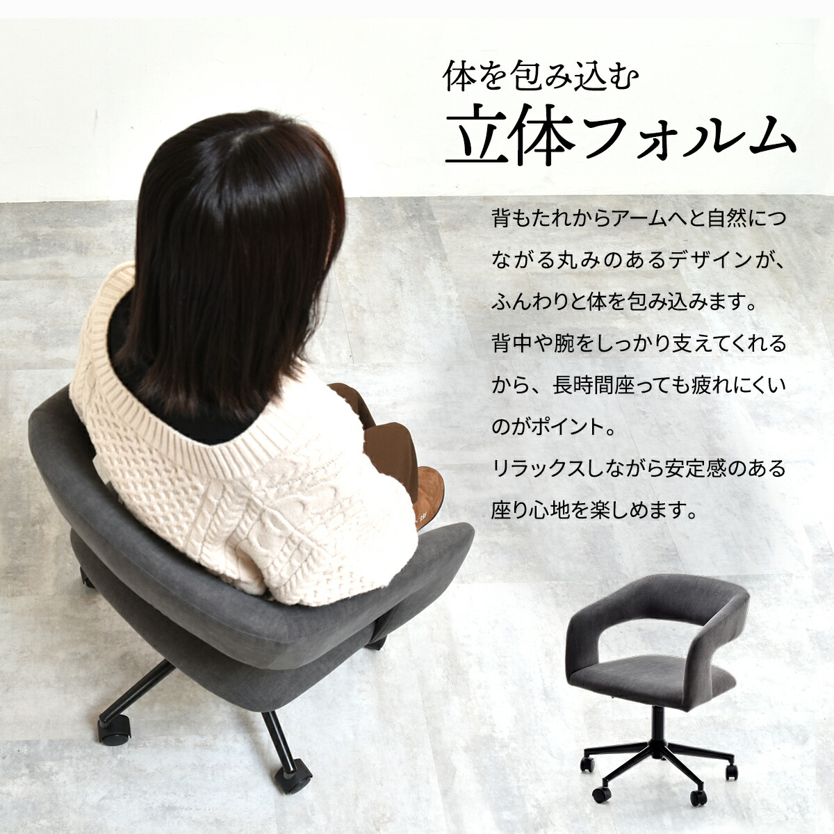 パーソナルソファのような包み込まれる座り心地と、日常に便利なキャスター&高さ調節機能を備えた多機能チェア。