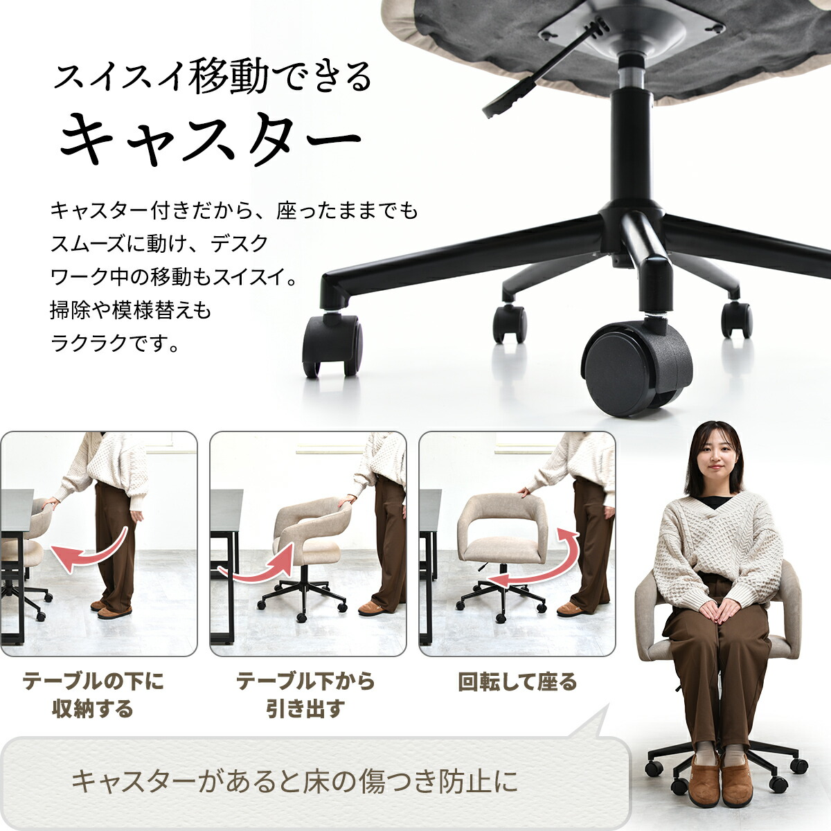 デスクチェア おしゃれ 北欧 疲れにくい お掃除ロボット対応 パソコンチェア オフィスチェア 在宅ワーク 椅子 腰痛 昇降 回転 キャスター付き 肘置き 高さ調節 事務椅子 ファブリック ミッド 書斎