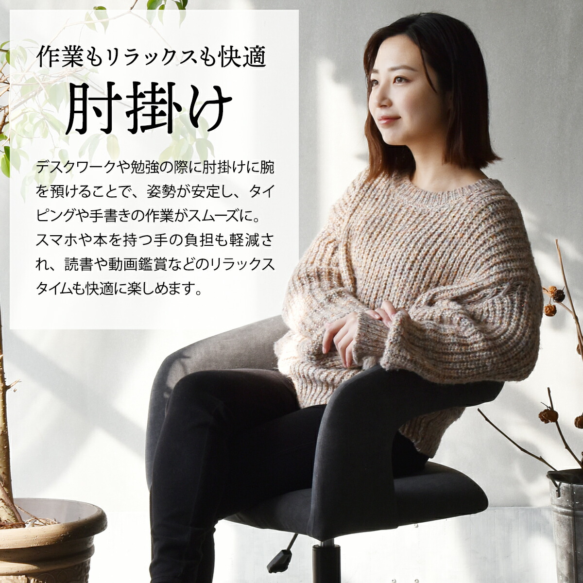 背中や腕をしっかり支えてくれるから、長時間座っても疲れにくいのがポイント。