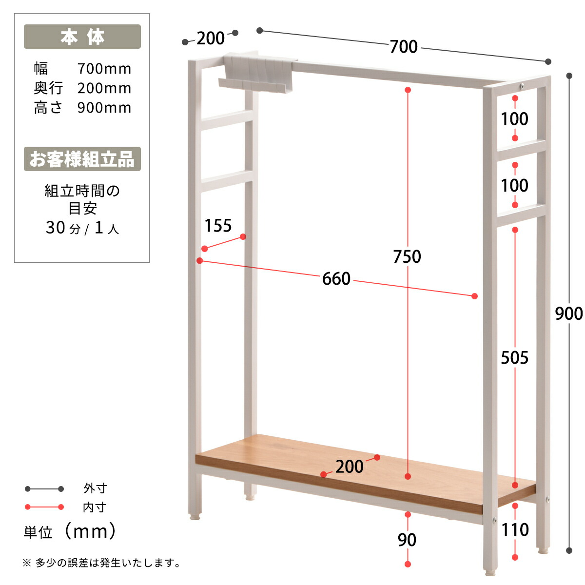 【棚板】中質繊維板にメラミン貼り 【脚/フック】スチールパイプ(粉体塗装)