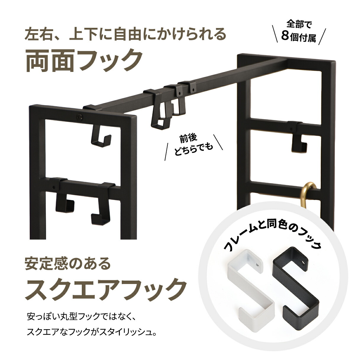 安っぽい丸型フックではなく、スクエアなフックがスタイリッシュ。