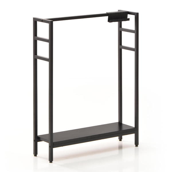 フレームはマットな質感のスチールで、下部の棚板がアクセントになっています。