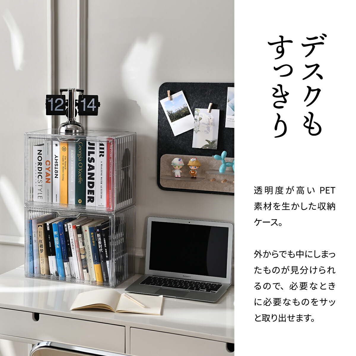 全面開きで積み重ね可能だから、たくさんのコレクションをディスプレイ可能です。