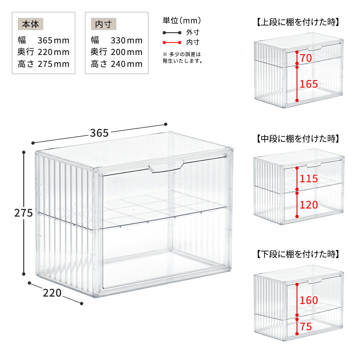 ディスプレイケース 棚付き 透明 クリアボックス 収納 フィギュア アクスタ プラモデル 飾る スタッキング フィギュアケース ショーケース プラスチック 軽量 かわいい おしゃれ ホ クリアケース