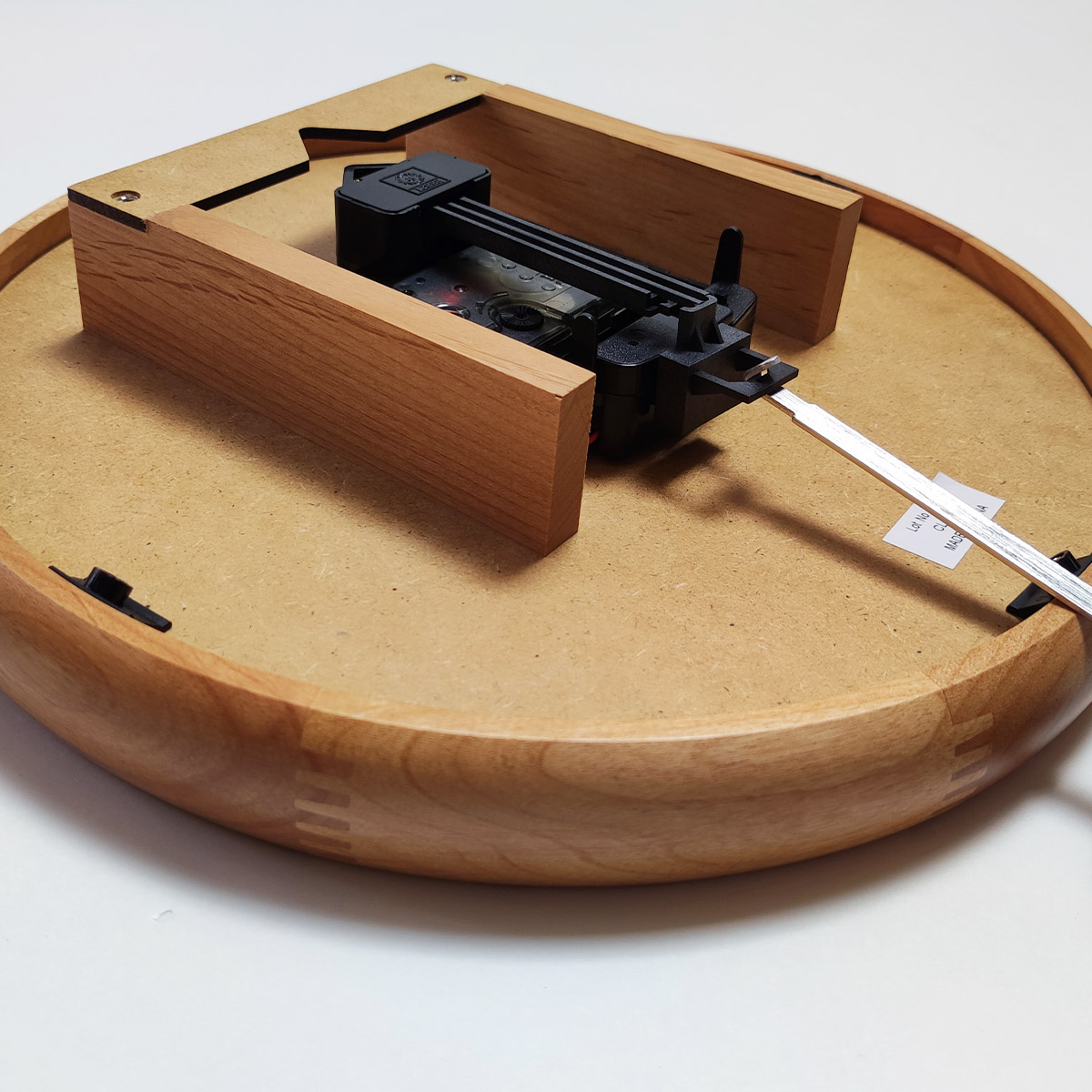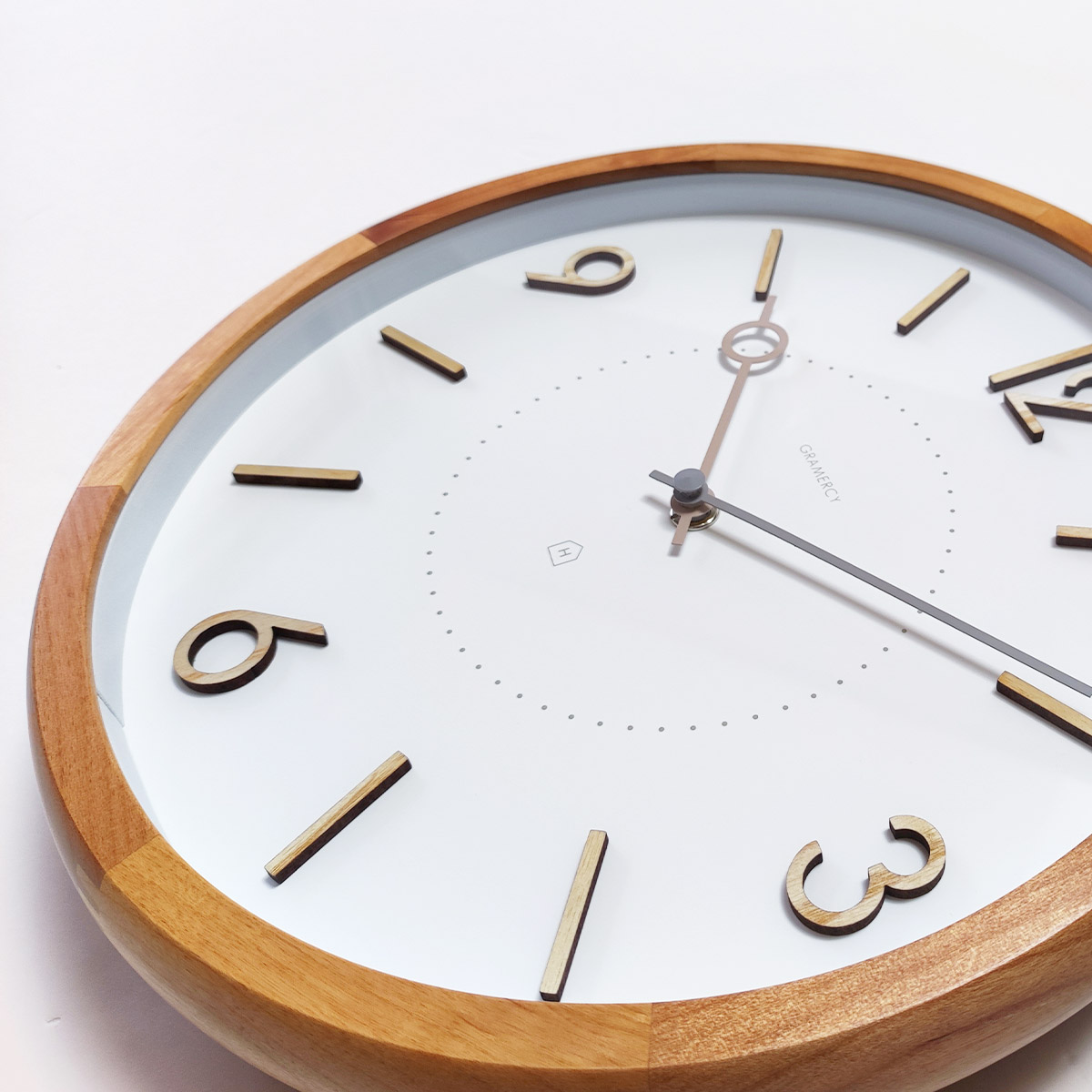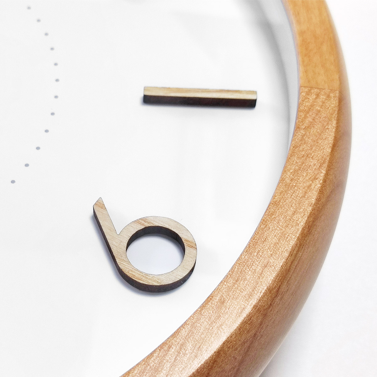 数字やインデックスにも木を使用、木材をカットした数字などを文字盤に張り付けることで立体的に仕上げています。数字やインデックスの表面にも木目が見えます。