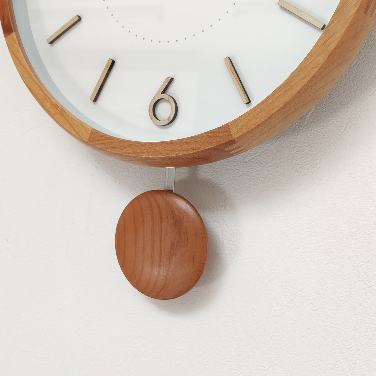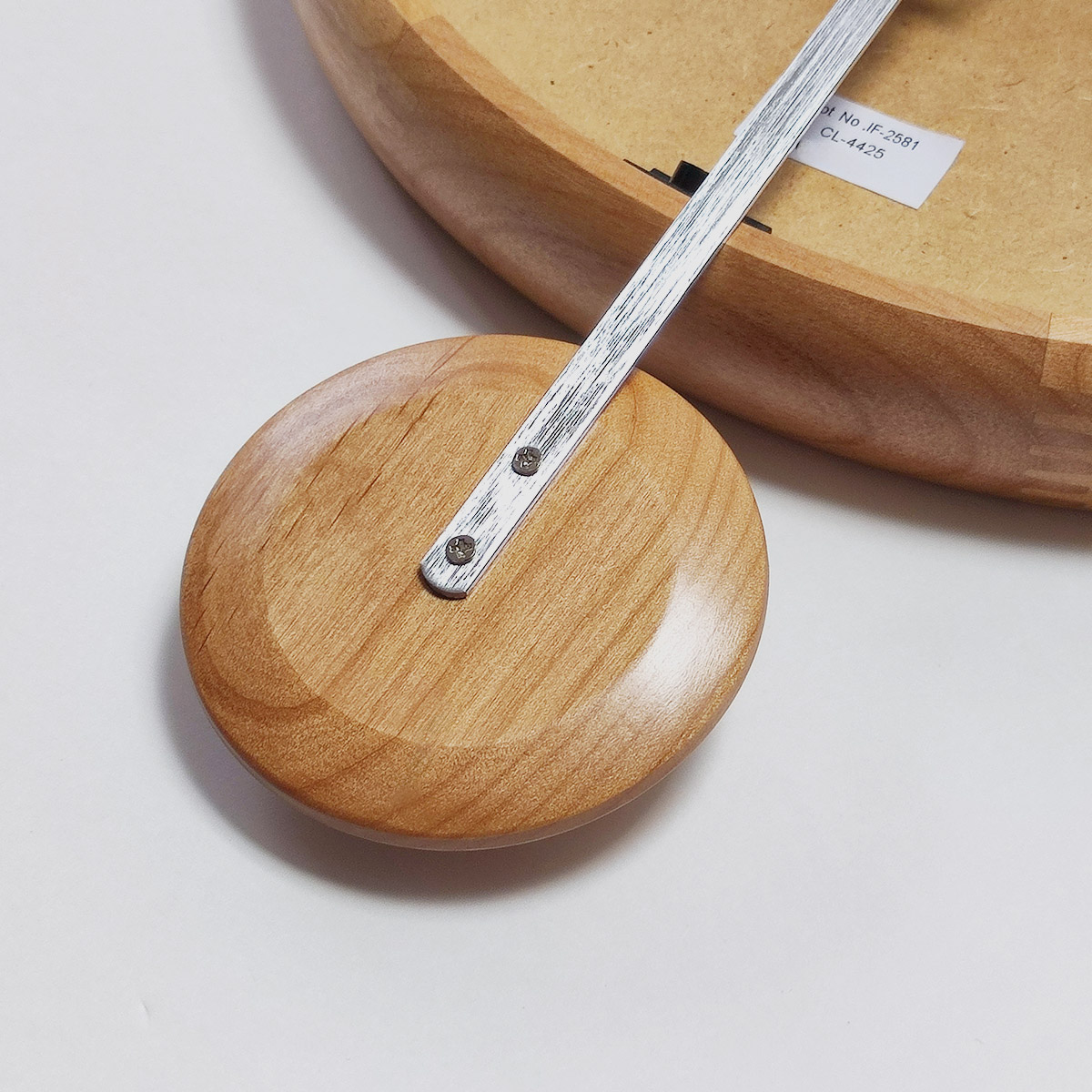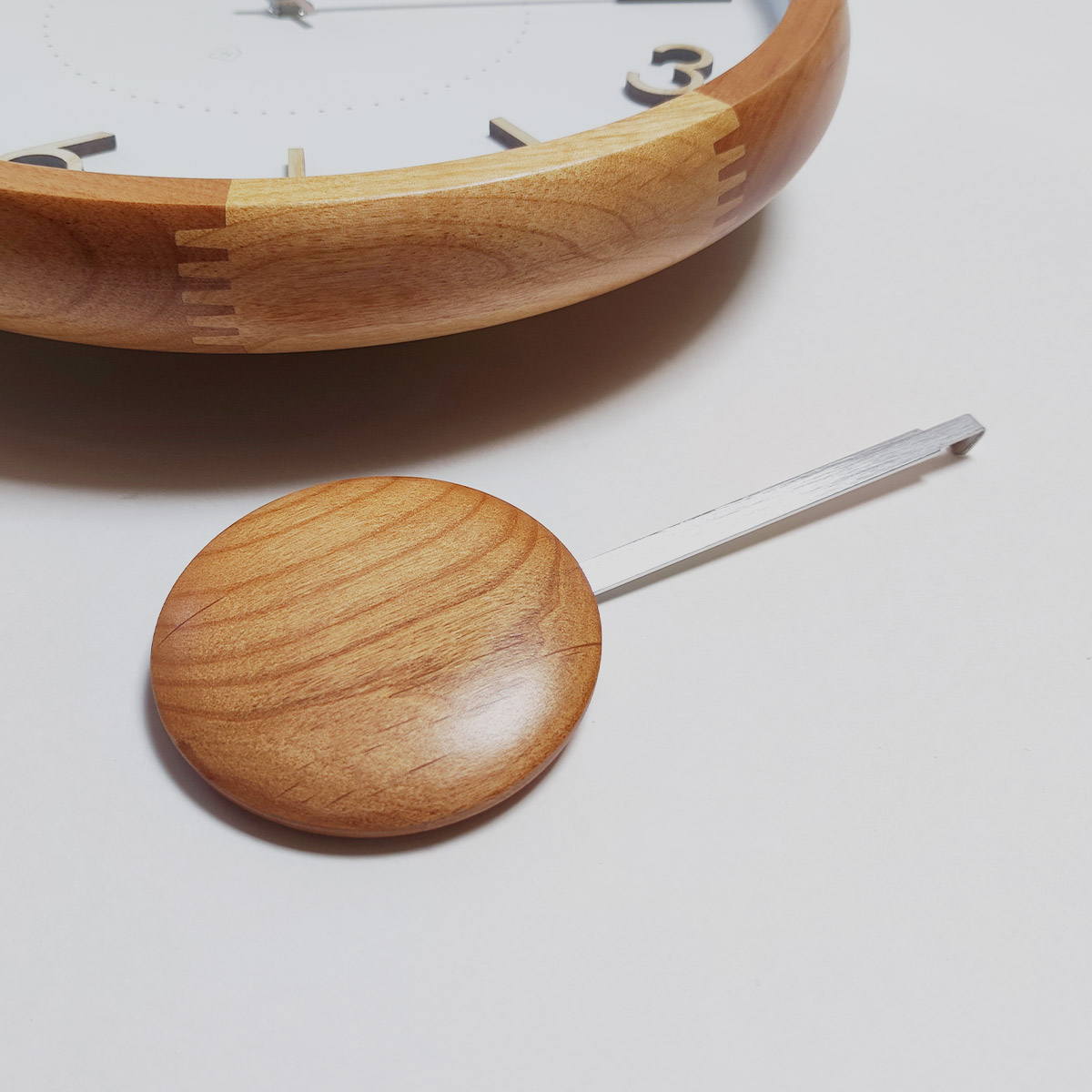 振り子の先端にも木を使用、ふっくらとした立体感をもたせて優しい印象に。