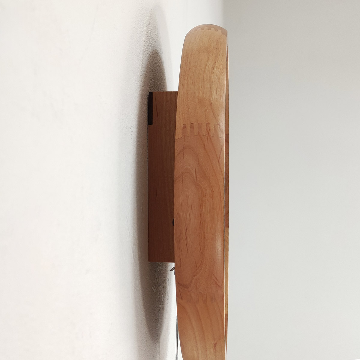 壁に取り付けると少し時計が浮いているような奥行のあるデザインになり、見る角度によって違った表情を見せてくれます