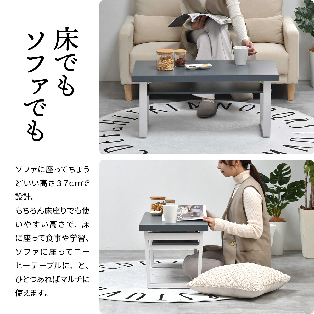 床座りでも、ソファに座ってもちょうどいい高さ37cmで設計。