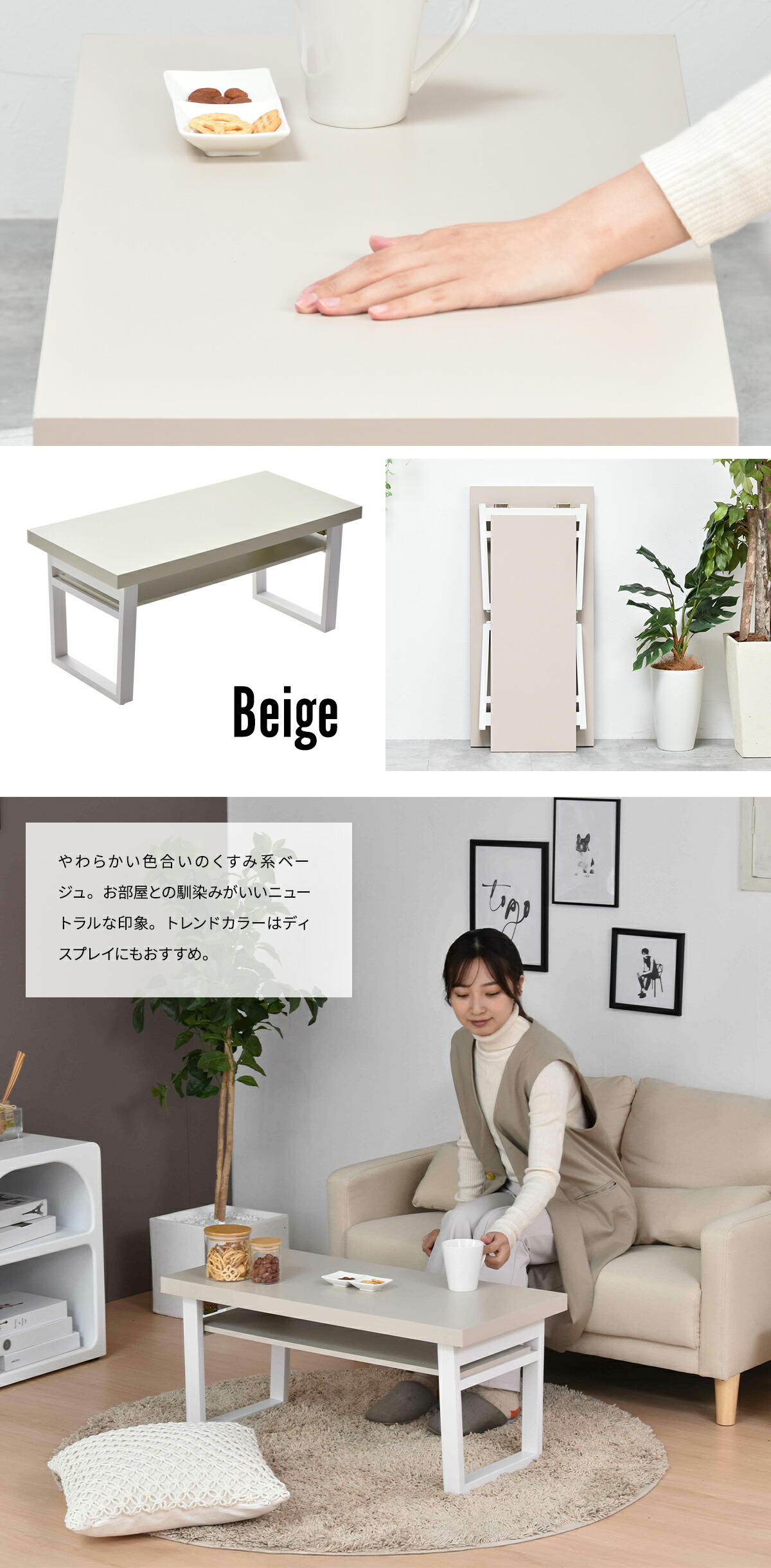 お部屋との馴染みがいいニュートラルな印象。トレンドカラーはディスプレイにもおすすめ。