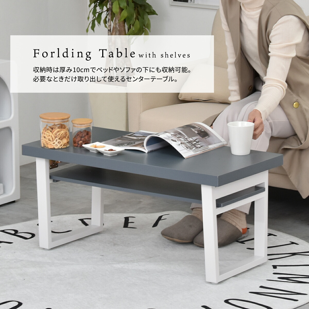 テーブル 折りたたみ おしゃれ 80cm センターテーブル リビングテーブル ローテーブル モダン 北欧 木製 コンパクト シンプル スリム 収納付き 長方形 一人暮らし コーヒーテ 棚付き