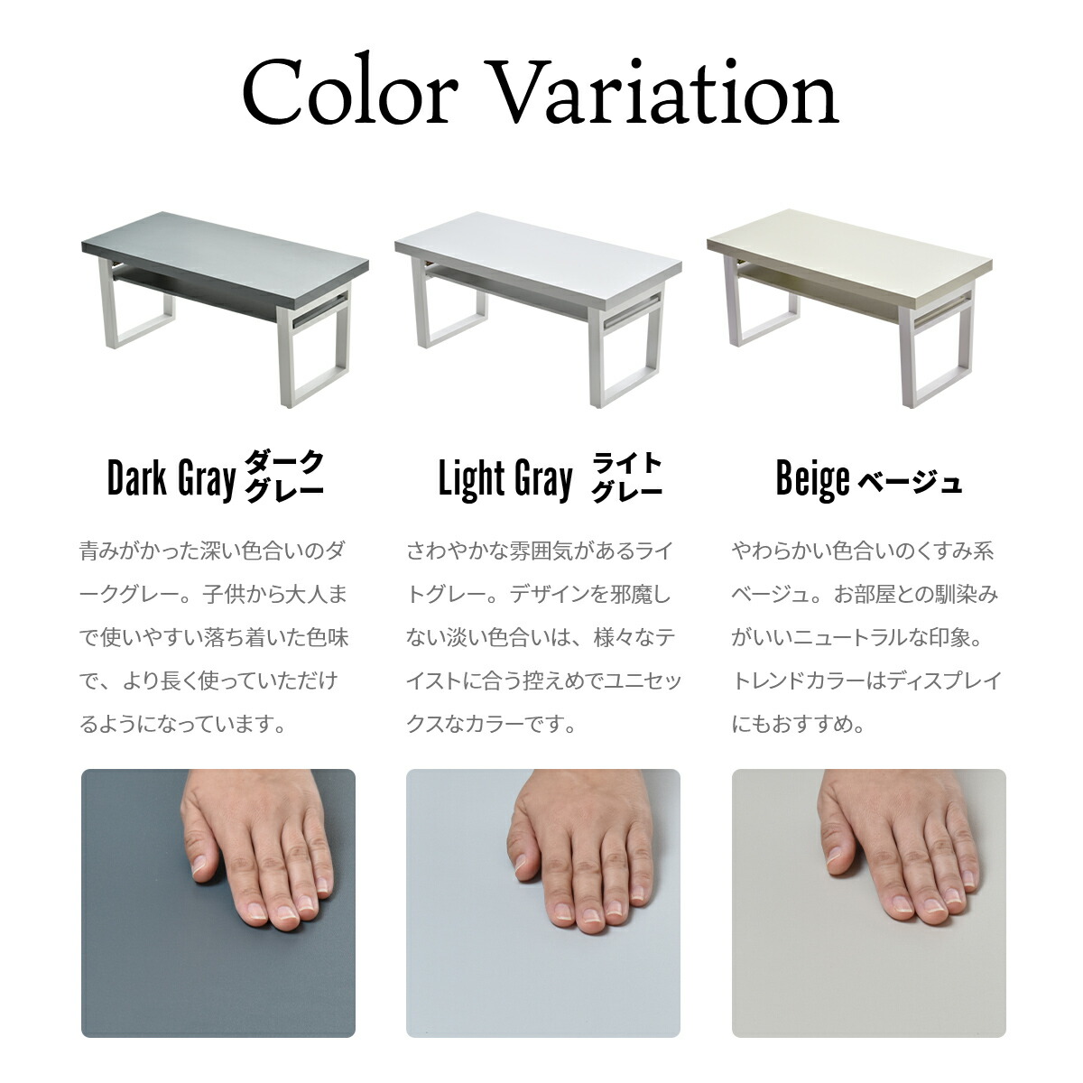 お部屋のテイストに合わせて選べるベージュ、ライトグレー、ダークグレーの3色をご用意しております。