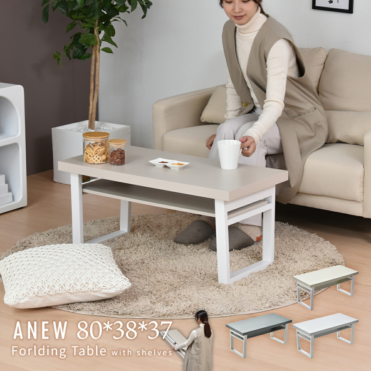Anew 棚付きフォールディングテーブル