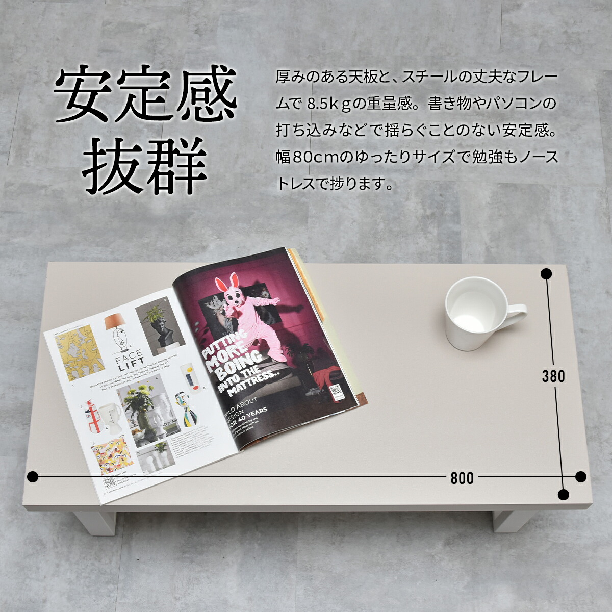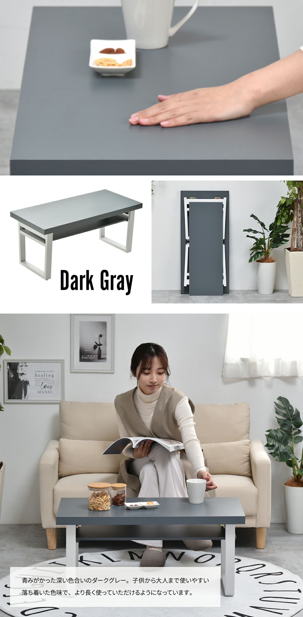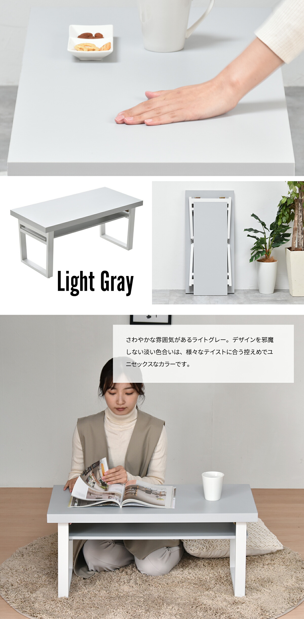 床に座って食事や学習、ソファに座ってコーヒーテーブルに、と、ひとつあればマルチに使えます。