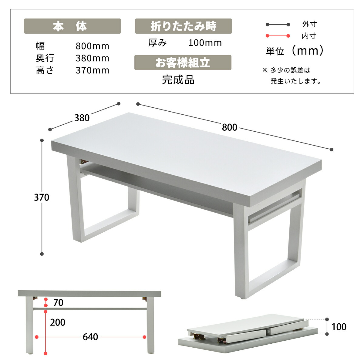 幅 800 × 奥行 380 × 高さ 370 mm